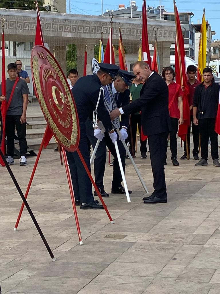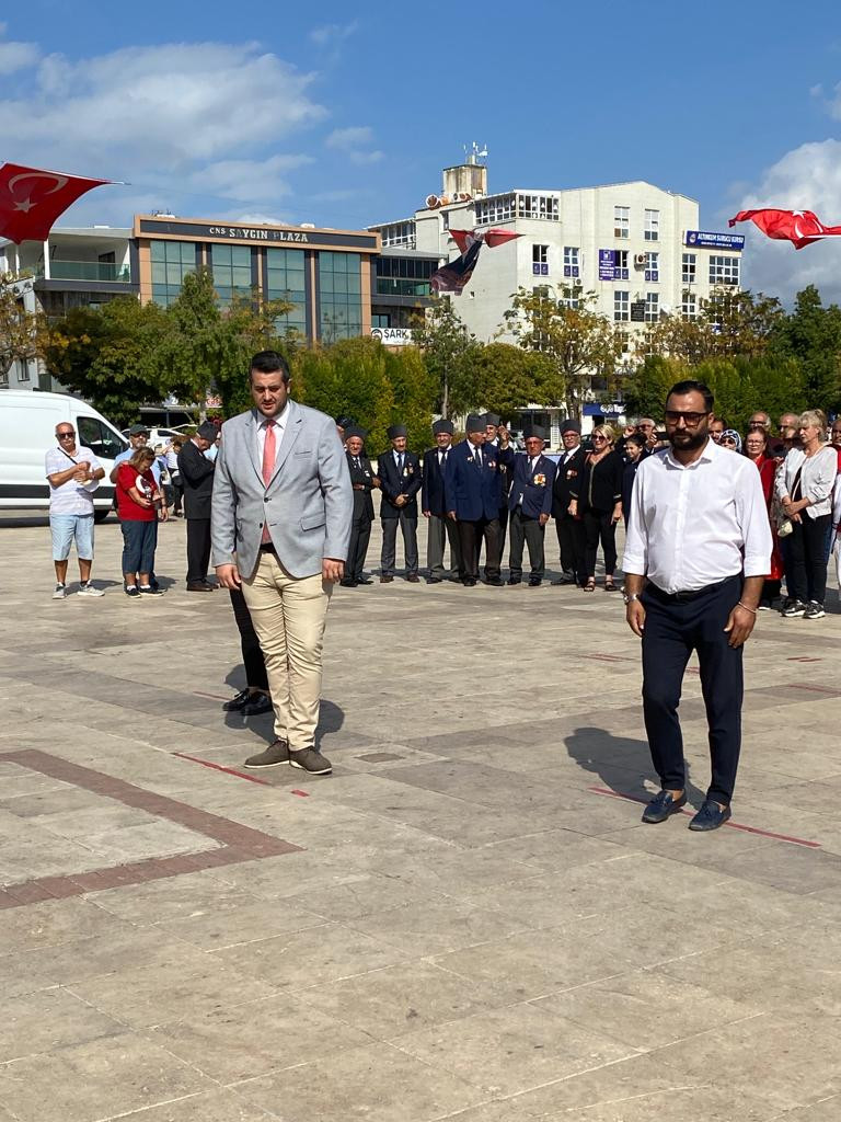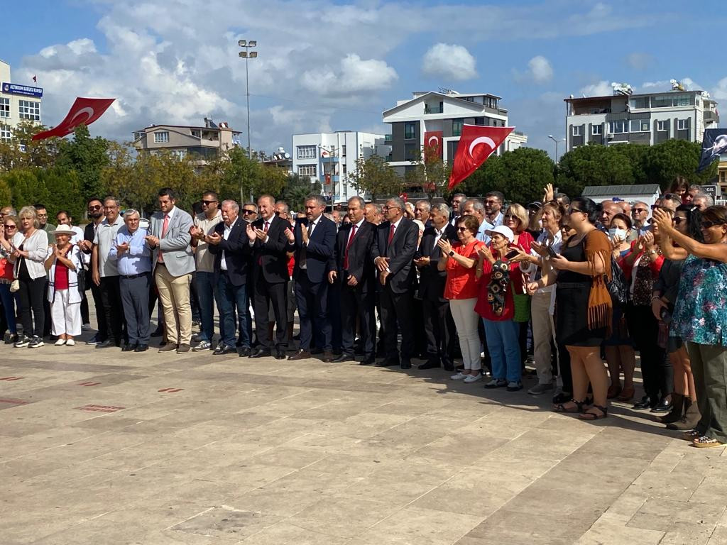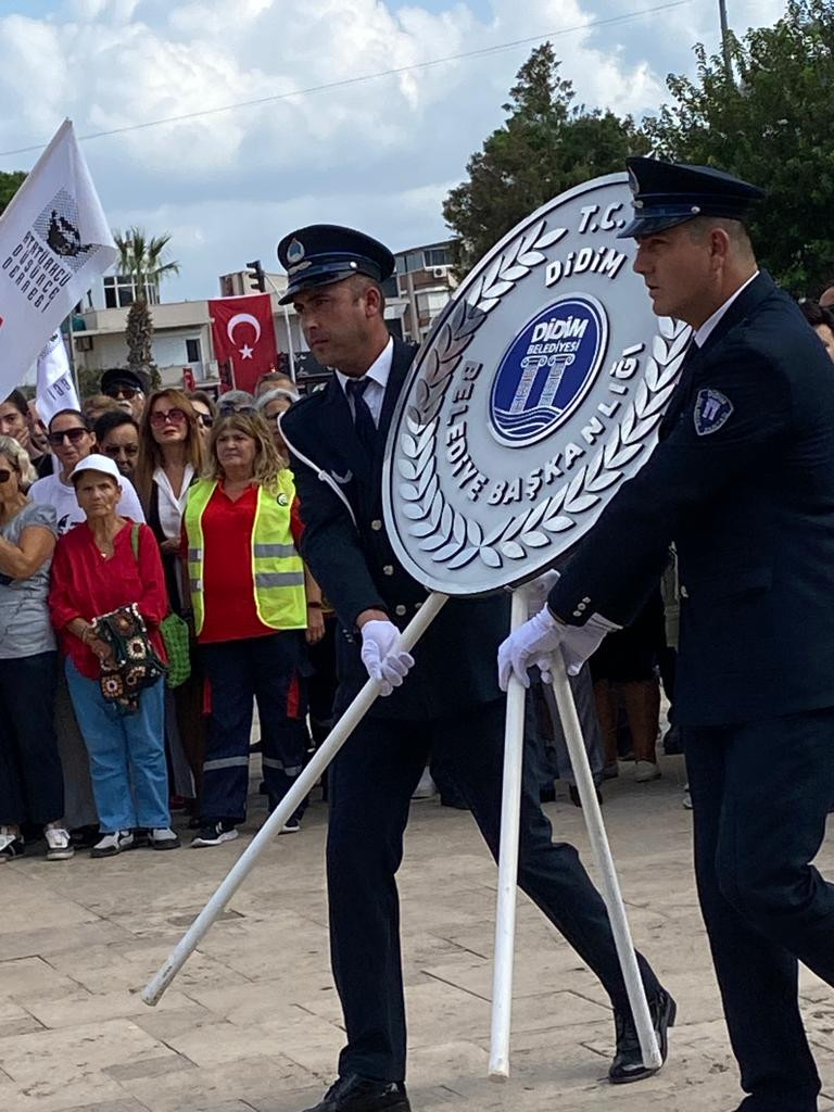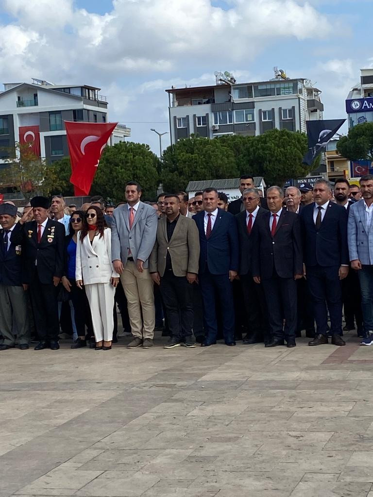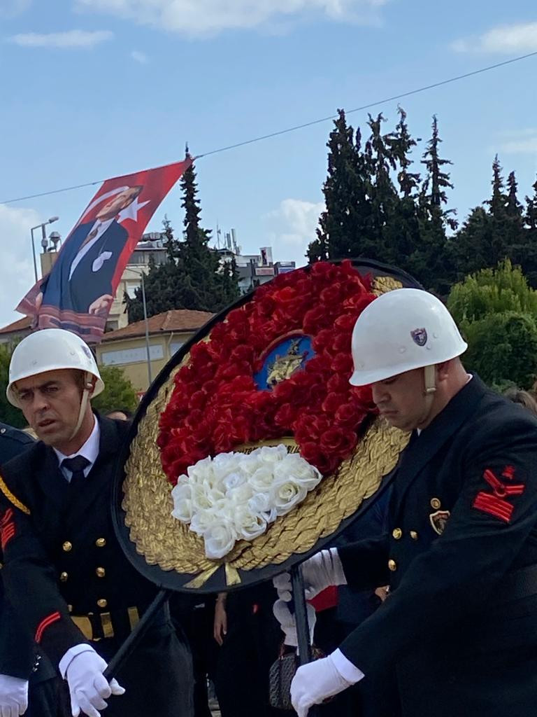 Didim Cumhuriyet Meydanı'nda, Cumhuriyetimizin 100. Yıldönümünü kutlamak üzere Didim Kaymakamlığı tarafından bugün Atatürk Heykeli'ne çelenk koyma programı düzenlendi.