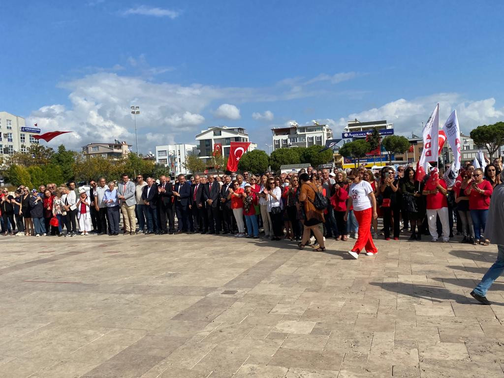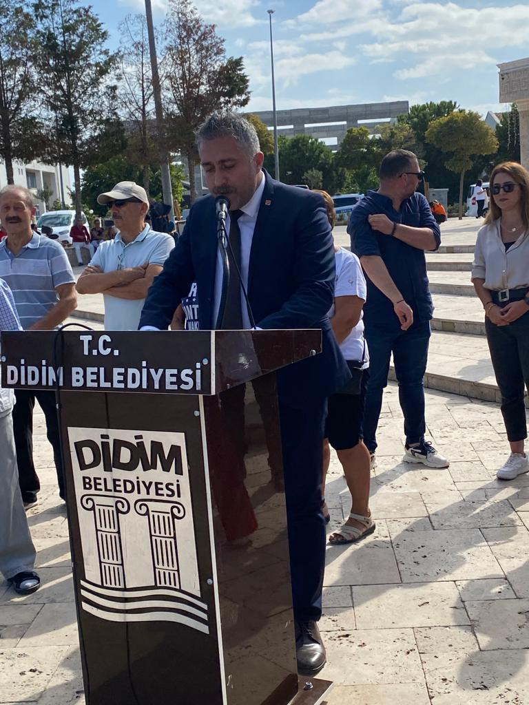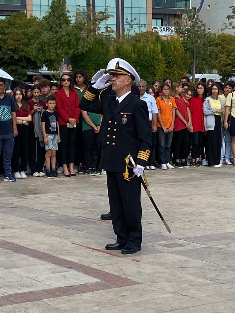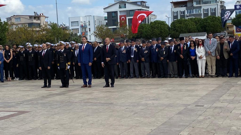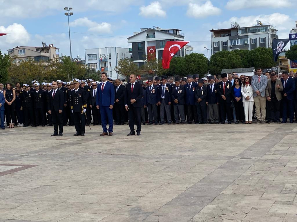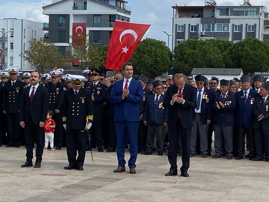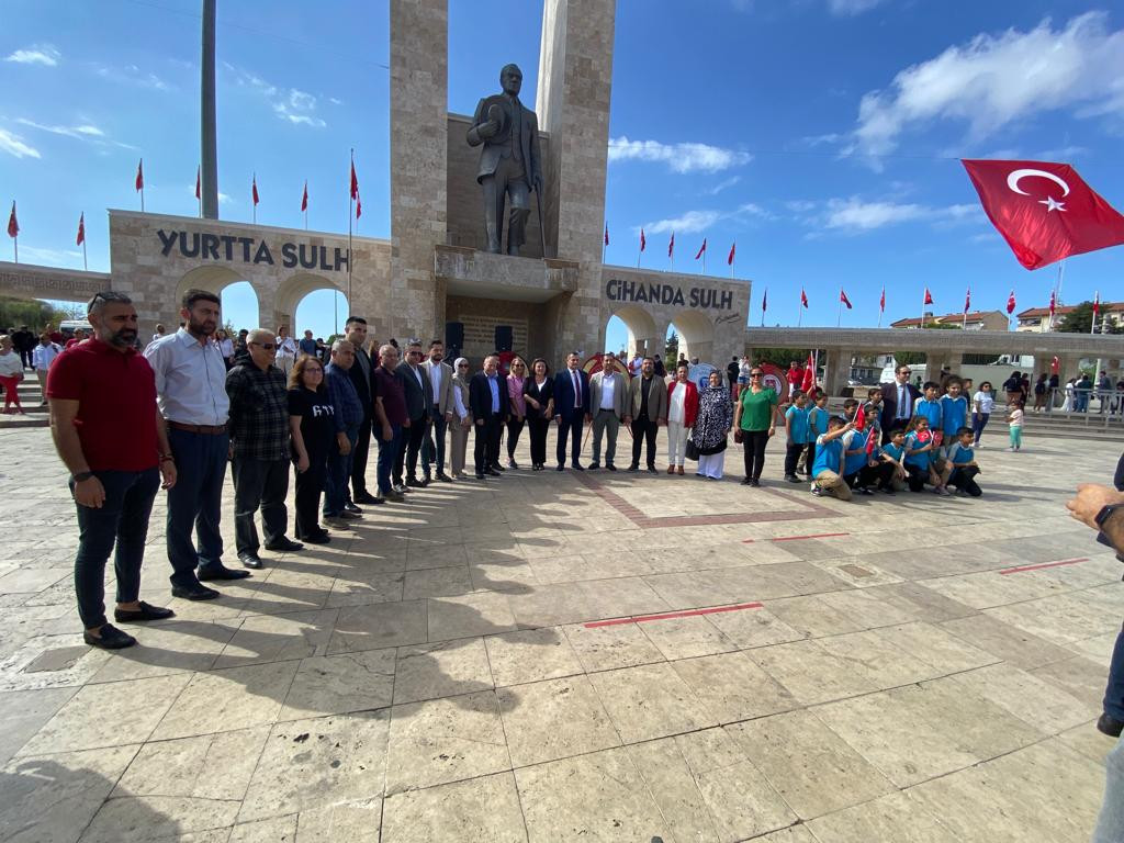 Didim Cumhuriyet Meydanı'nda, Cumhuriyetimizin 100. Yıldönümünü kutlamak üzere Didim Kaymakamlığı tarafından bugün Atatürk Heykeli'ne çelenk koyma programı düzenlendi.