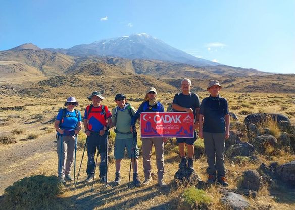 Türkiye'nin farklı kentlerinden Ağrı'nın Doğubayazıt ilçesine gelen dağcı grubu, 5 bin 137 metre yüksekliğindeki Ağrı Dağı'na tırmandı.