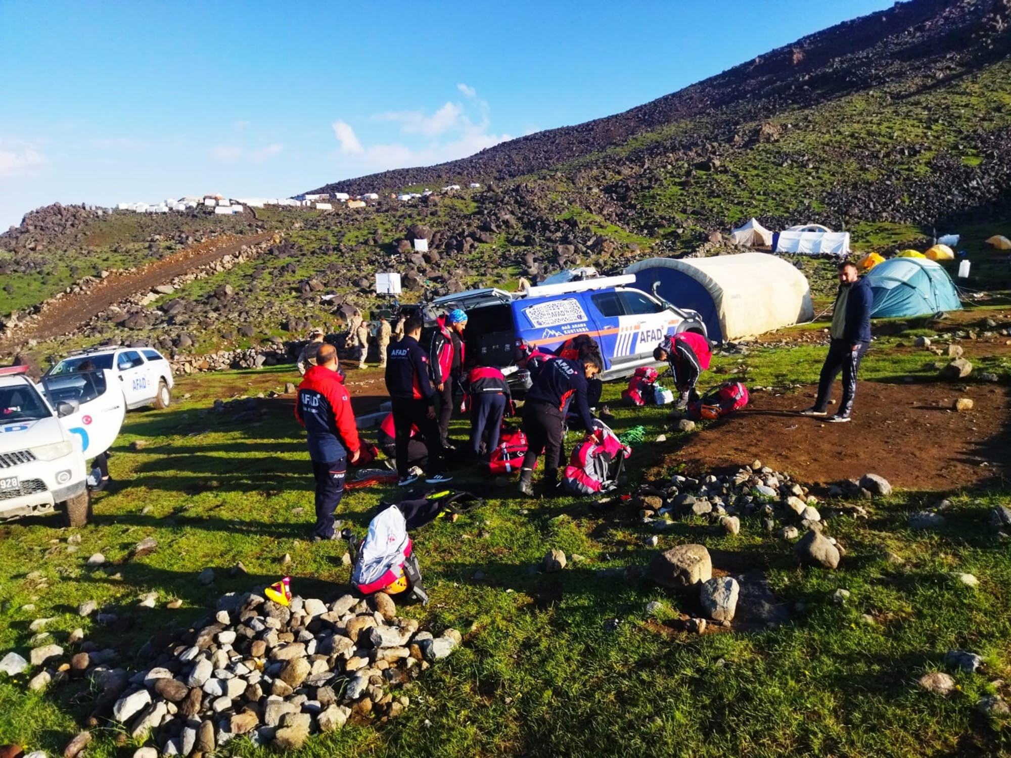 Yerli rehberlerden oluşan bir ekip ile Van AFAD'dan 10, Ağrı AFAD'dan 4 kişilik ekip, dağcıları aradı.