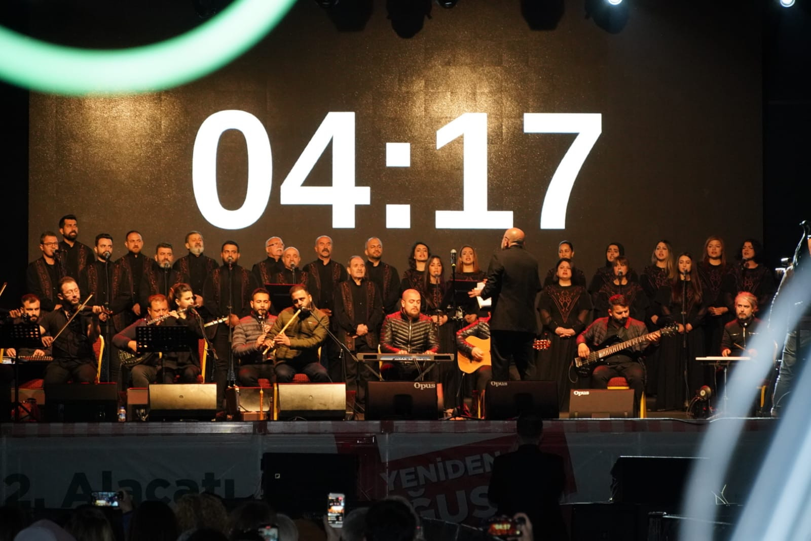 Alaçatı Ot Festivali’nin ilk akşamında Antakya Medeniyetler Korosu sahne aldı. Yaklaşık olarak iki saat performans sergileyen grubun konserinde izleyenler “sesimi duyan var mı” bölümünde gözyaşlarına boğuldu.