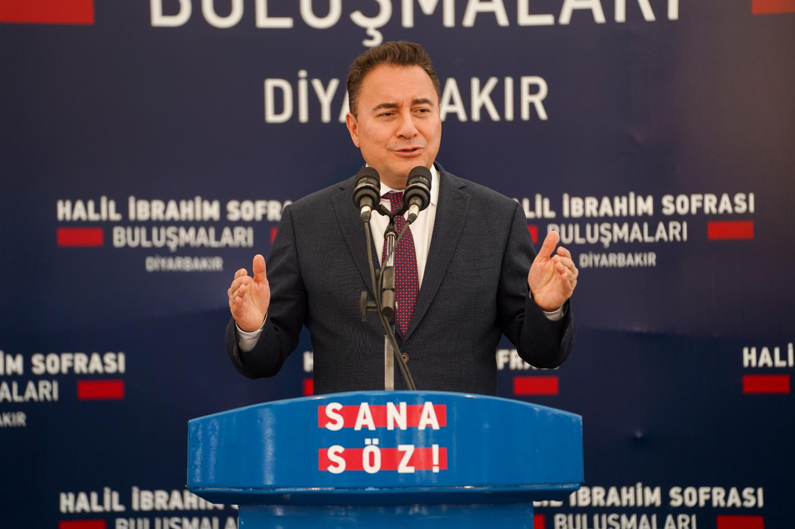 Ramazan Bayramı’nın birinci gününde Diyarbakır’daki Halil İbrahim Sofrası buluşmasında konuşan DEVA Partisi Genel Başkanı Ali Babacan, “Çocukların eline silah verilmesin diye buradayım” dedi.
