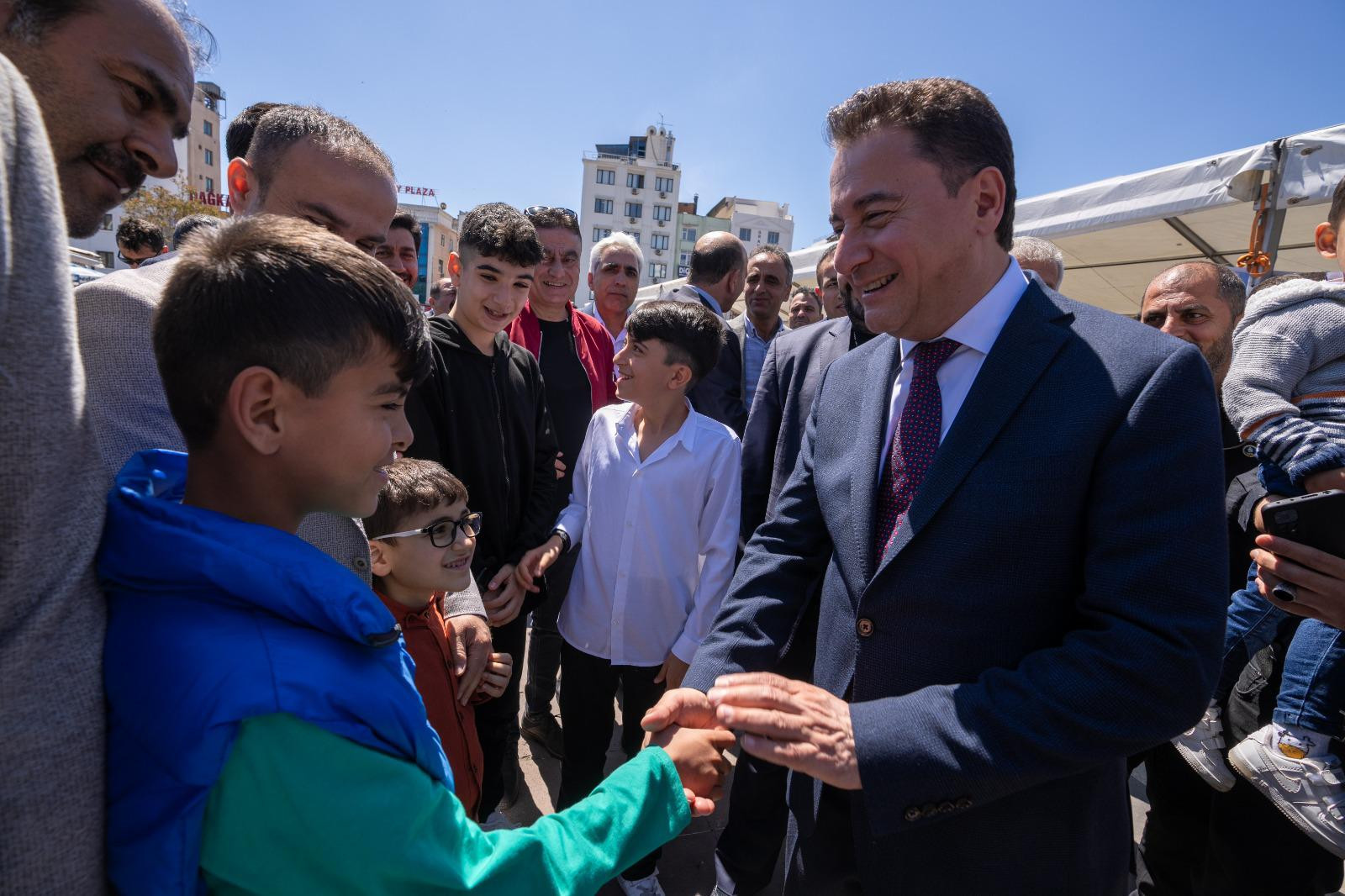 Ramazan Bayramı’nın birinci gününde Diyarbakır’daki Halil İbrahim Sofrası buluşmasında konuşan DEVA Partisi Genel Başkanı Ali Babacan, “Çocukların eline silah verilmesin diye buradayım” dedi. “Bu seçim; evladına bayramlık alamayan analar, evine baklava alamayan babalar kazanacak” diyen Babacan, “14 Mayıs, tüm sokaklarda Türkçe, Kürtçe, Arapça, Lazca, Boşnakça şarkılarla türkülerle kutlanacak” ifadelerini kullandı.