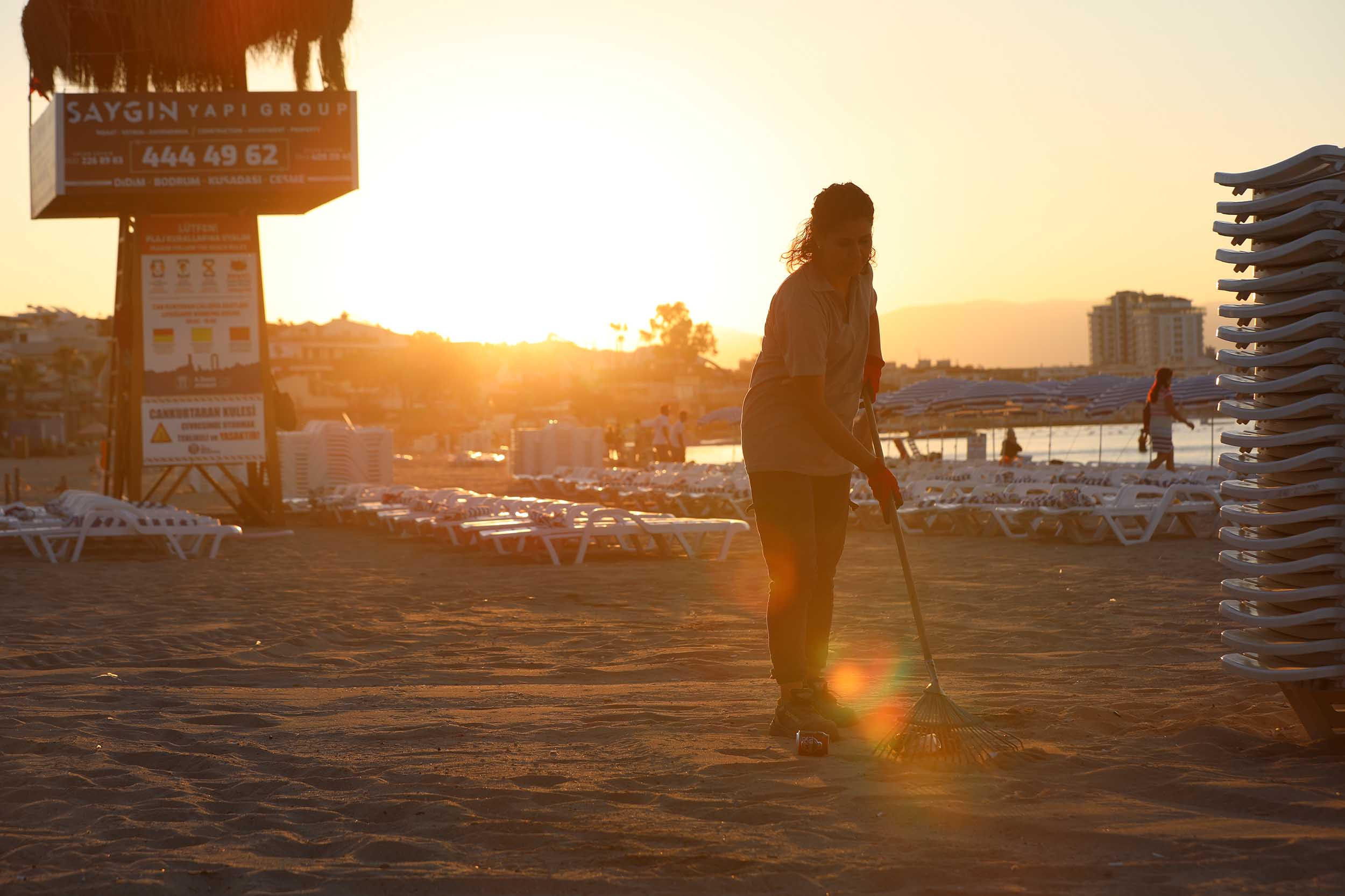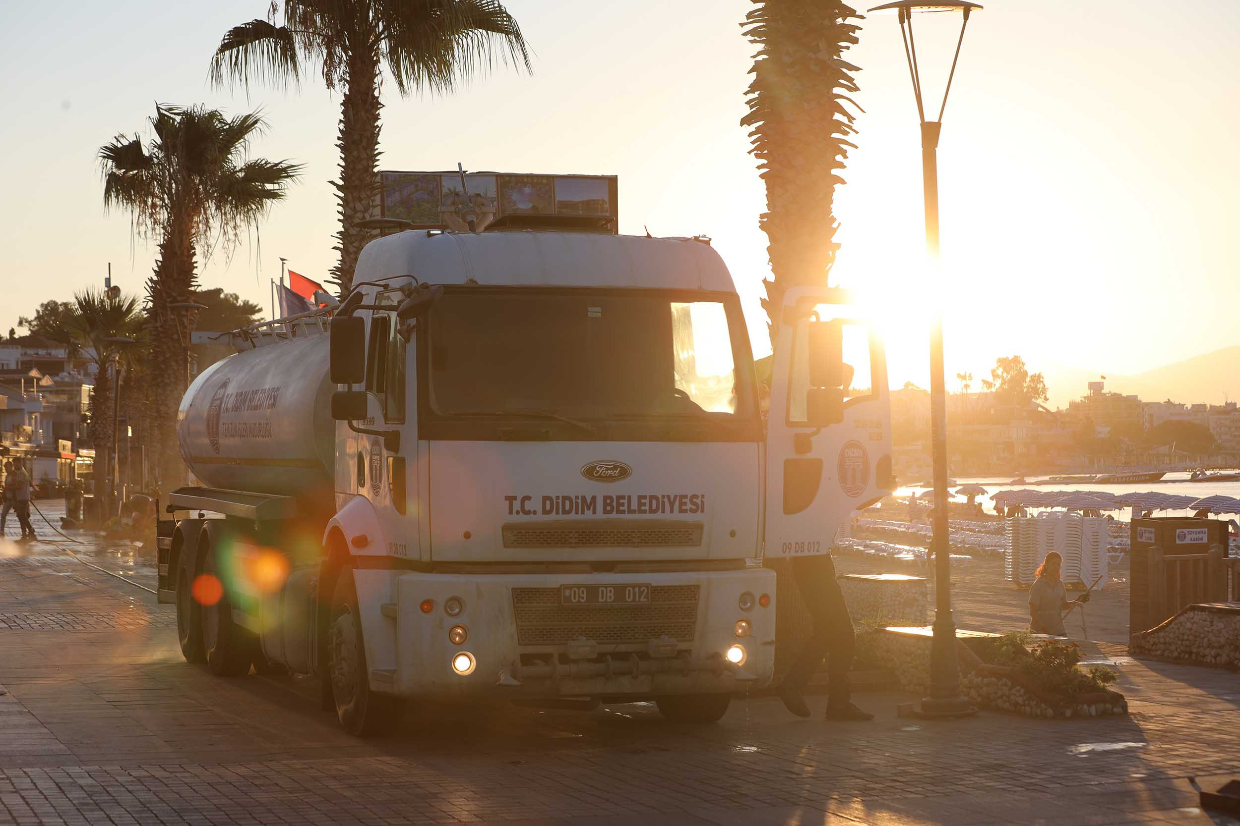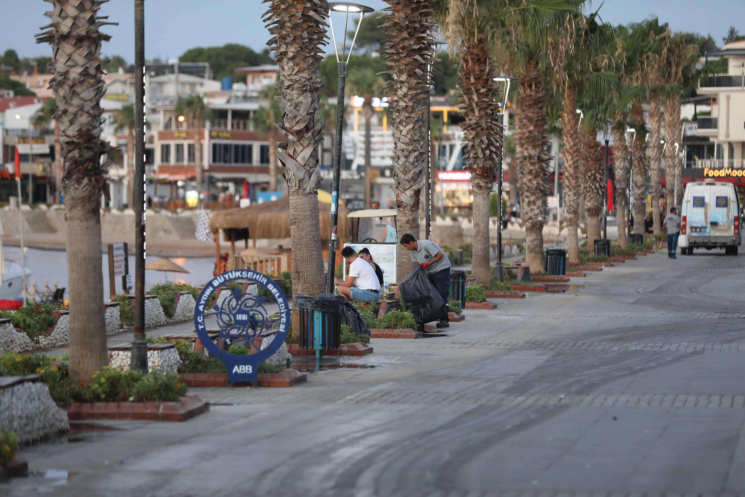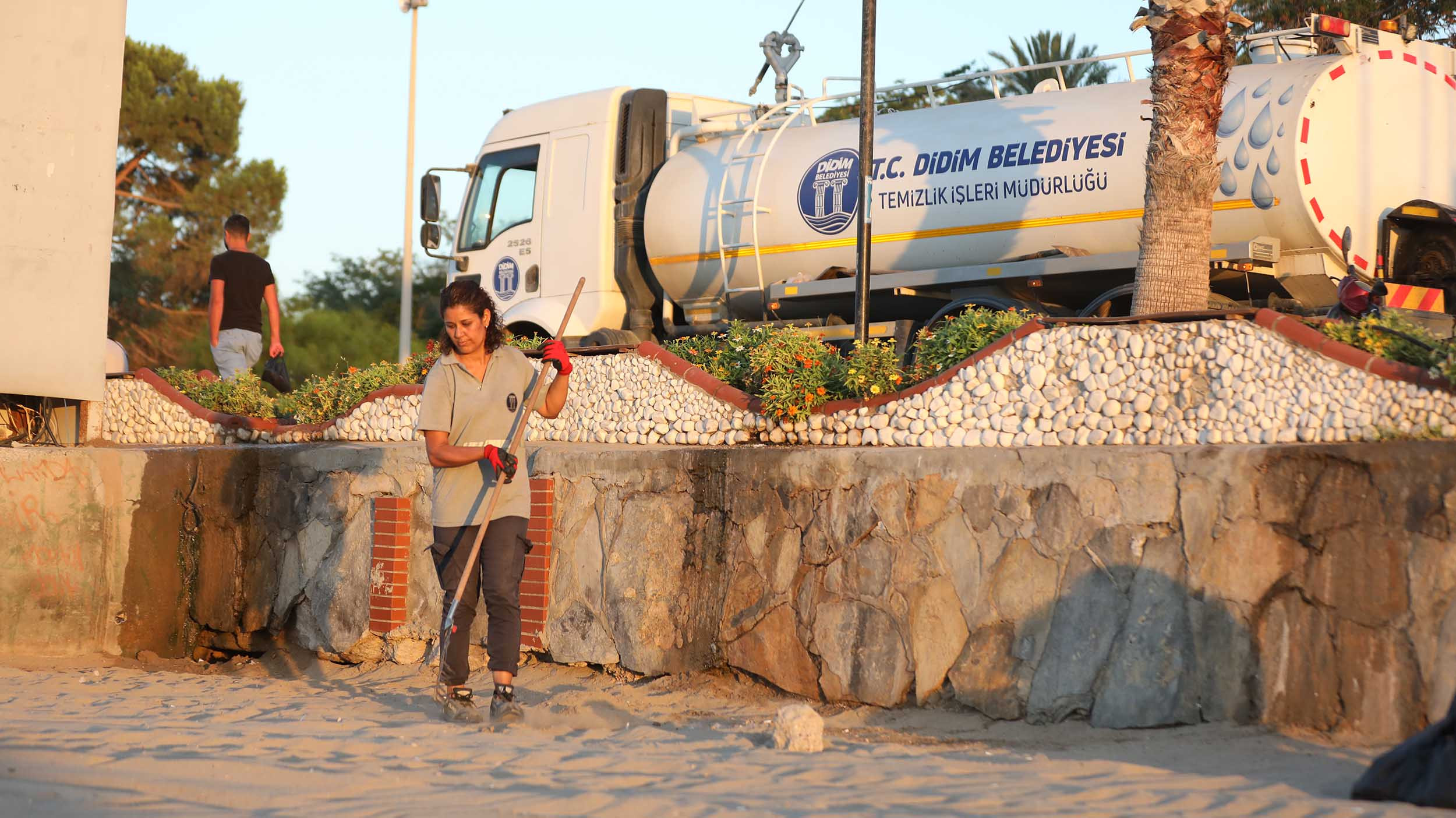 Didim Belediyesi Temizlik İşleri Müdürlüğü ekipleri, sabahın ilk saatlerinde Altınkum sahilinde detaylı temizlik çalışması gerçekleştirdi.