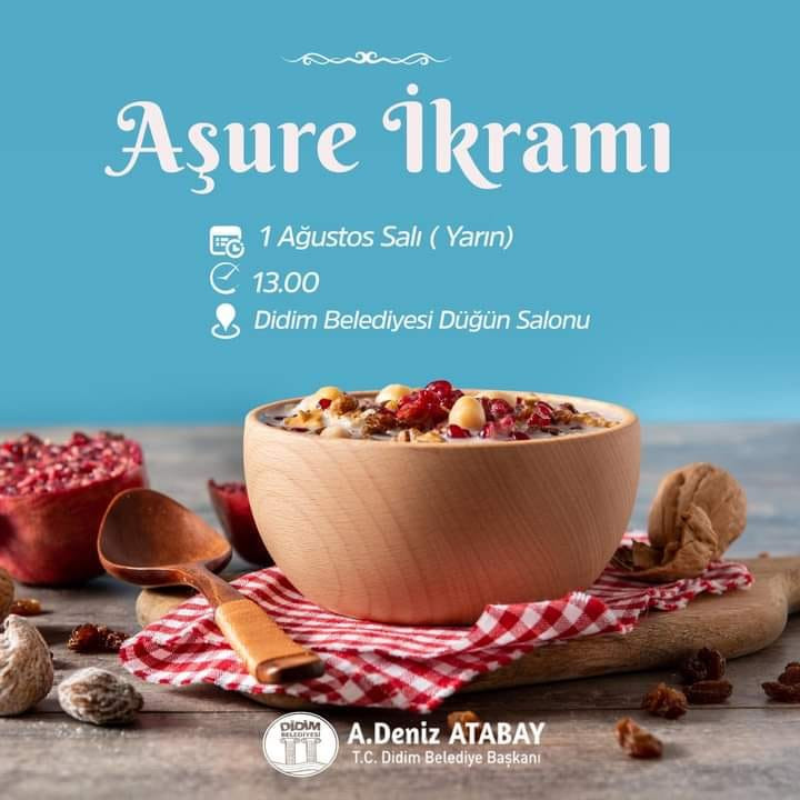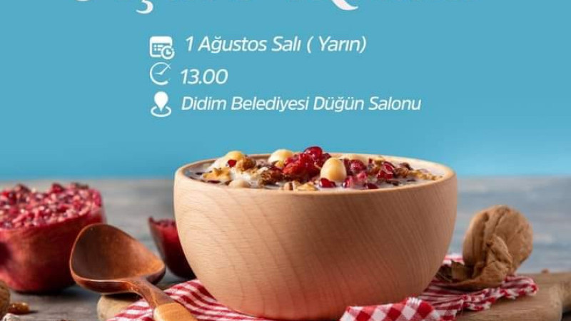 Didim Belediyesi'nin aşure hayrı bugün saat 13.00'te Didim Düğün Salonu önünde yapılacak. Didimliler davetli...