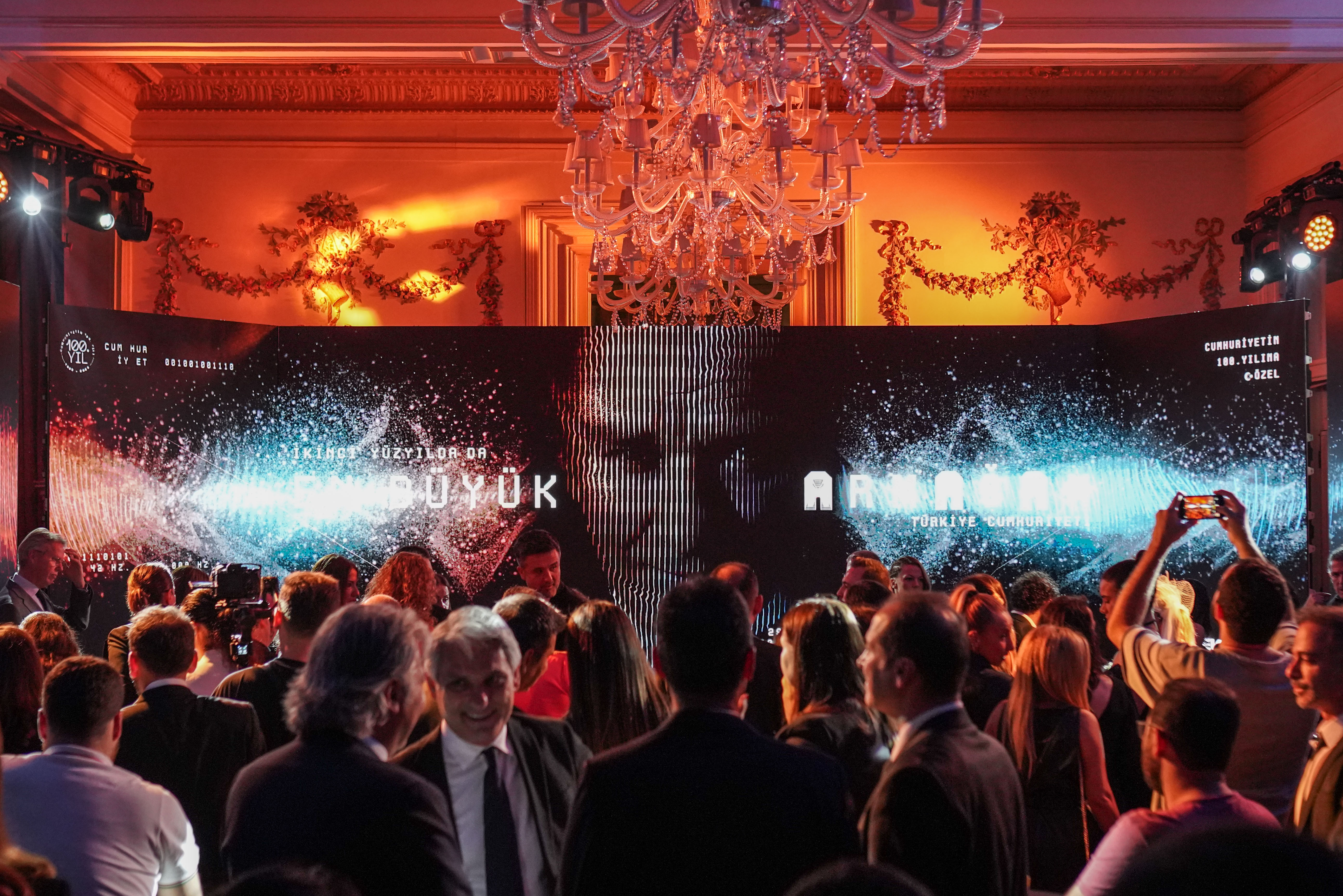 Tarihin önemli anlarına tanıklık eden Pera Palace Hotel’de gerçekleşen lansman gecesinde, Atatürk’ün kendi sesinden daha önce hiç duyulmayan pek çok değerli sözü, yapay zekâ teknolojisi ile bir kez daha akıllara ve kalplere dokundu. Atatürk’ün sesinden sözleri, görme ve işitme engellilerin de erişebileceği biçimde 29 Ekim’e kadar herkesle buluşacak.