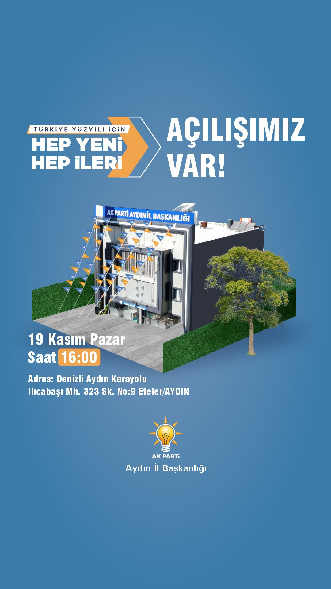 Adalet ve Kalkınma Partisi (AK Parti) AK Parti Aydın İl Başkanlığı hizmet binasının açılışı, Genel Başkan Yardımcısı Erkan Kandemir’in katılımı ile yarın yapılacak.