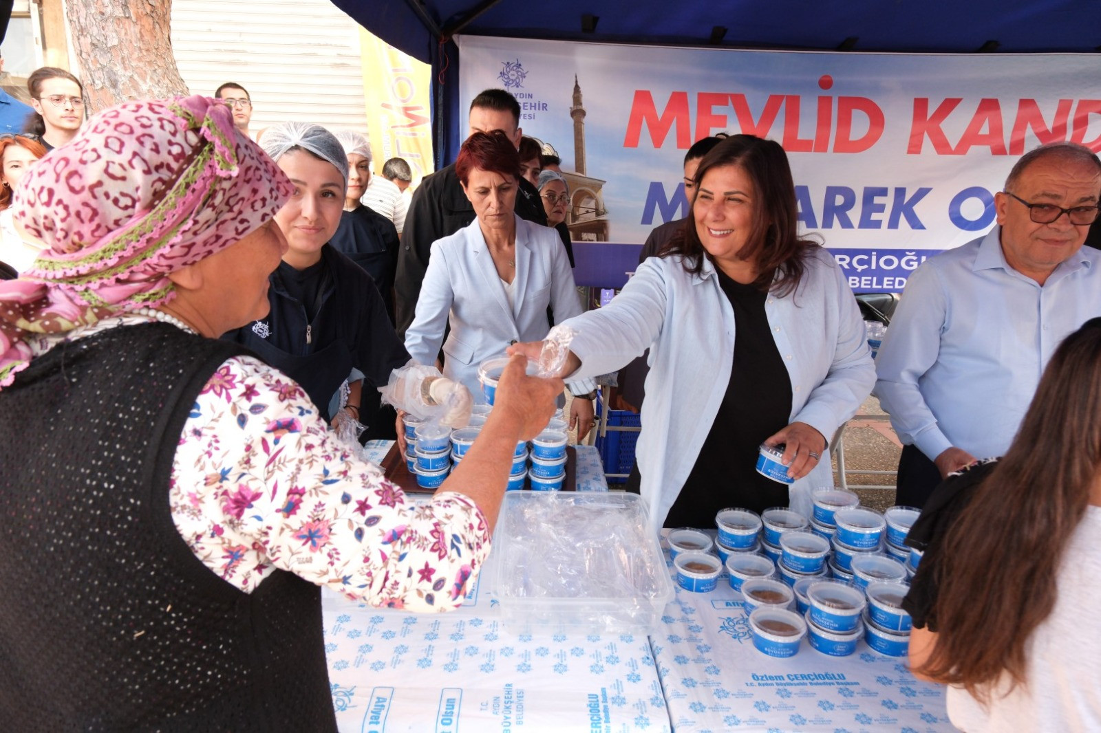 Efeler Zafer Meydanı’ndaki helva hayrına katılan Aydın Büyükşehir Belediye Başkanı Özlem Çerçioğlu, ‘‘Ülkemize ve tüm dünyaya sağlık, barış ve huzur getirmesi dileğiyle; Mevlid Kandilimiz mübarek olsun.’’ dedi.