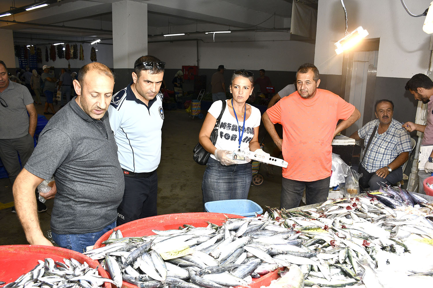 Denetimde, satışa sunulan balıkların boyları da ölçülerek yasal sınırlara uygunluğuna bakıldı.