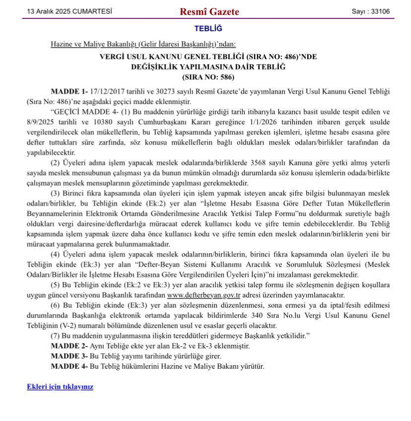 Geçtiğimiz günlerde Resmî Gazete’de yayımlanarak yürürlüğe giren Vergi Usul Kanunu Genel Tebliği’nde yapılan değişiklikle, basit usulde vergilendirilen ve 1 Ocak 2026 tarihinden itibaren gerçek usule geçecek olan esnafların defter ve beyanname işlemlerine ilişkin önemli bir düzenleme hayata geçirildi.