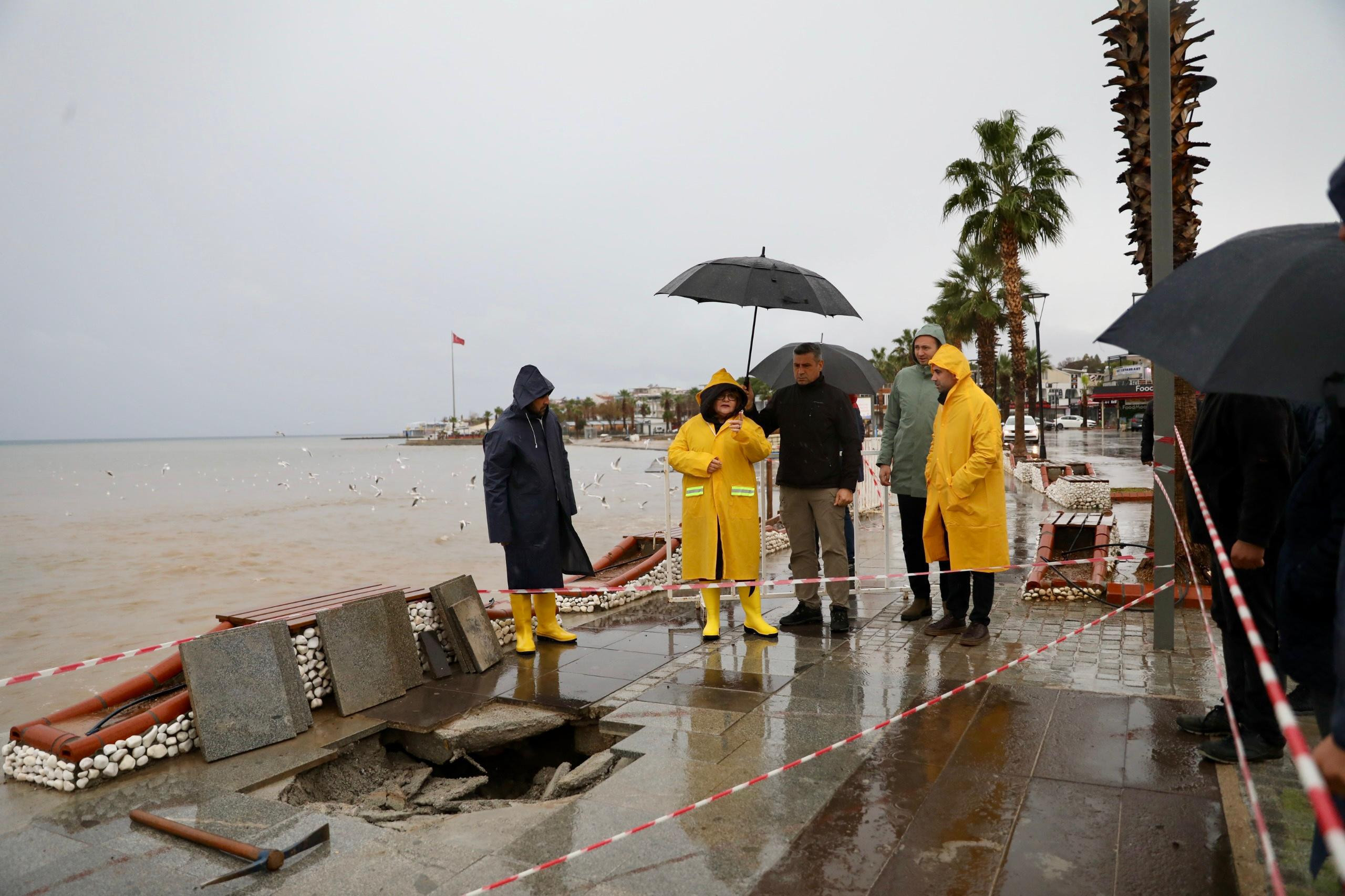 Didim’de iki gündür etkisini gösteren kuvvetli yağışlardan ve olumsuz hava şartlarından dolayı vatandaşların etkilenmemesi için Didim Belediyesi çalışmalarını sürdürüyor.