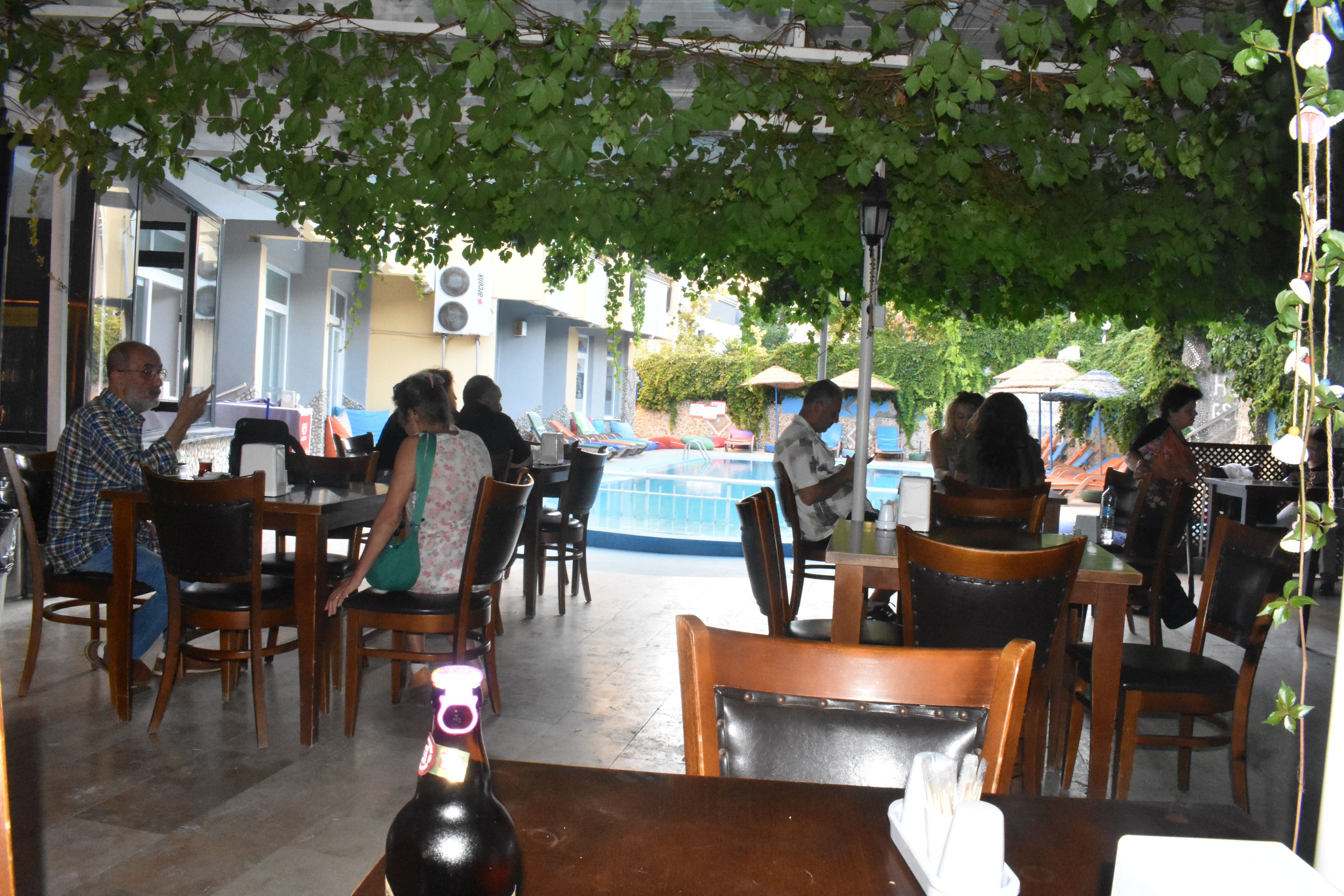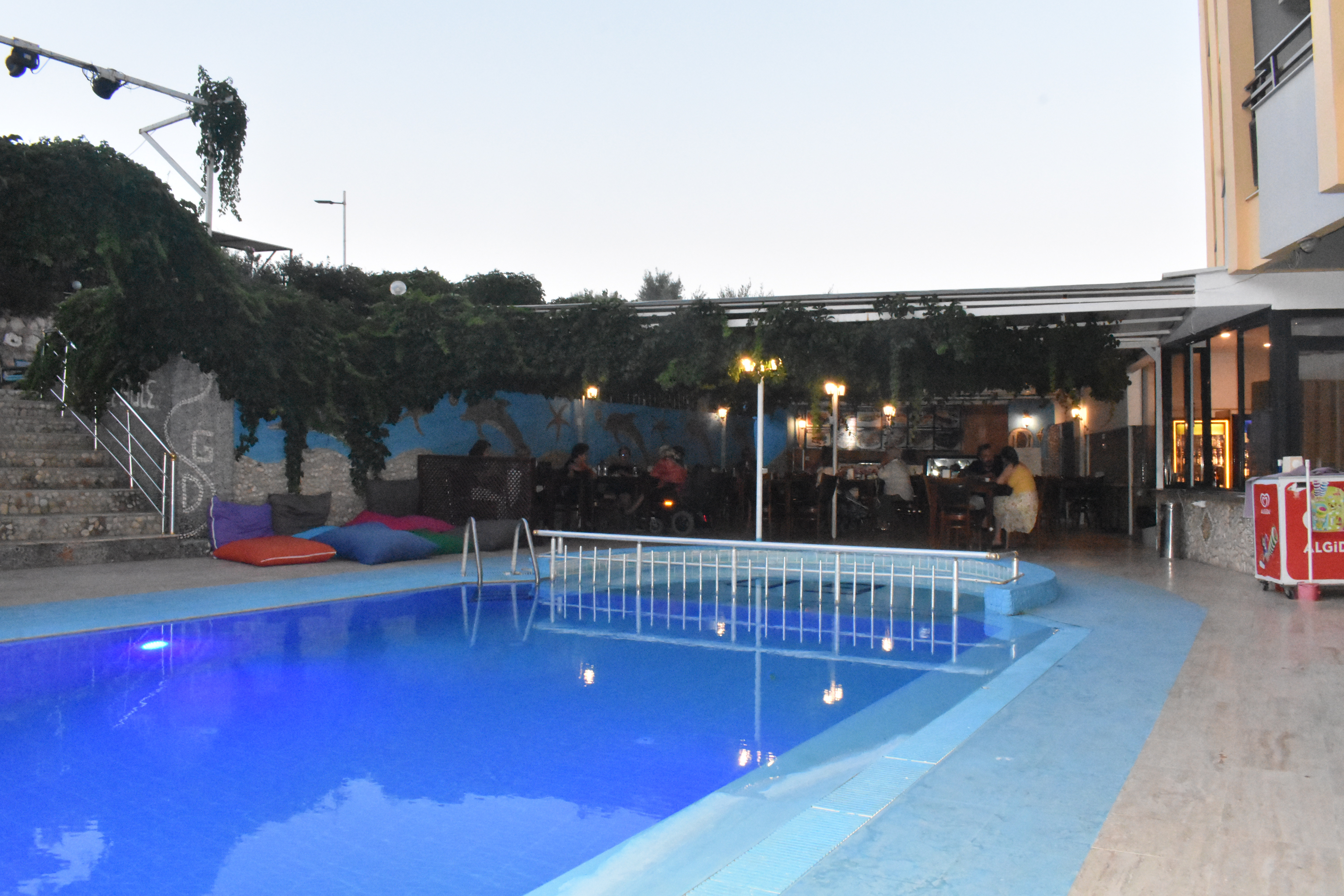 Ayrıca otelin havuz etrafında ve bahçesinde düzenlenen eğlence gecelerinin de keyfini çıkarıyorlar.