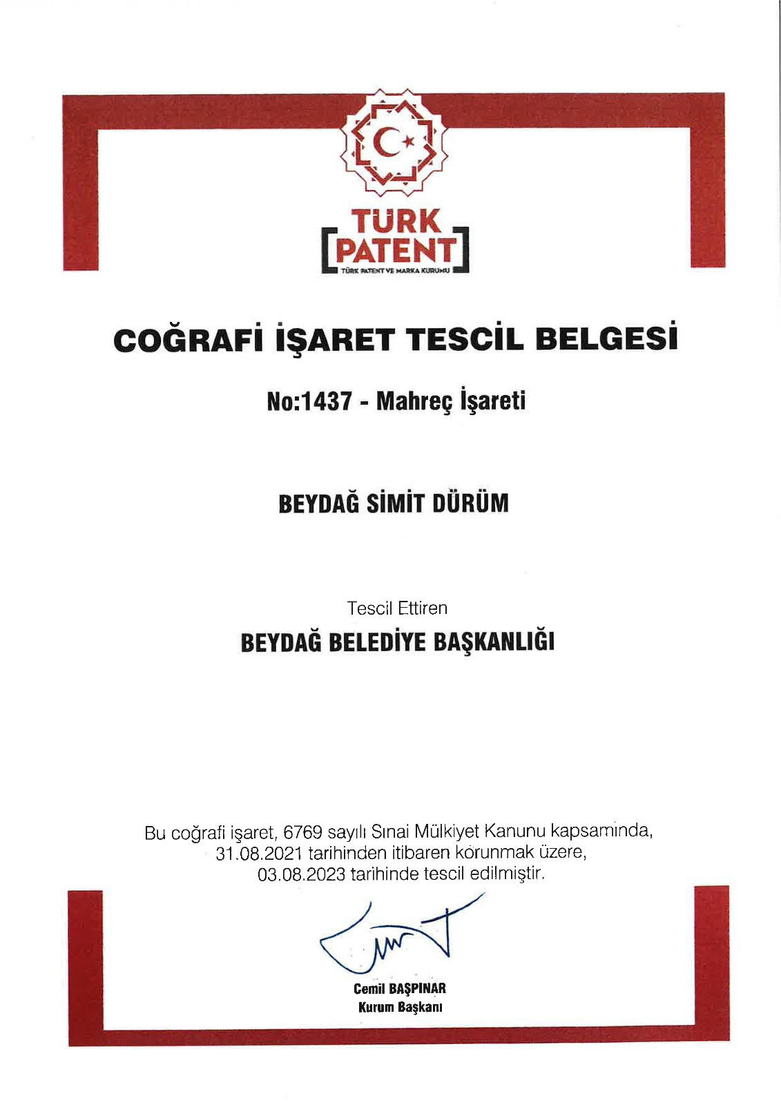 Beydağ Belediye Başkanı Feridun Yılmazlar, "Coğrafi işaret çalışmalarımız uzun soluklu bir çabanın ürünüdür. Ürünlerimizi tescil ettirdikten sonra üretimin yaygınlaştırılması ve ekonomimize en verimli biçimde entegre edilmesi hususu önem kazanıyor. Biz de konunun bütün taraflarıyla bir araya gelerek çalışmalarımızı bu alanda yoğunlaştıracağız. Amacımız ilçemizin biraz daha tanınması ürünlerini herkesin bilmesidir. Böyle ürünleri güvenilir olarak piyasaya lanse etmenin ancak böyle tescille olabildiğini ifade ederek, "Geleneksel metotlarla elde edilen bu ürünler kalite standartlarını yakalayan "Coğrafi İşaret" ile mümkün olabiliyor. Bu sayede bu ürünümüz markalaşacak ve rakiplerinden ayrılacak. Dolayısıyla Beydağ'ın bu ürünleri markalaştırmasıyla kent bir marka şehir olacak. Beydağ Simit Dürümü coğrafi işaret tescilinin tüm üreticilere ve Beydağ halkına hayırlı olmasını dilerim." dedi.
