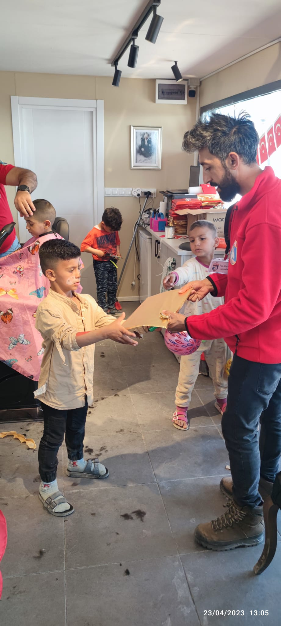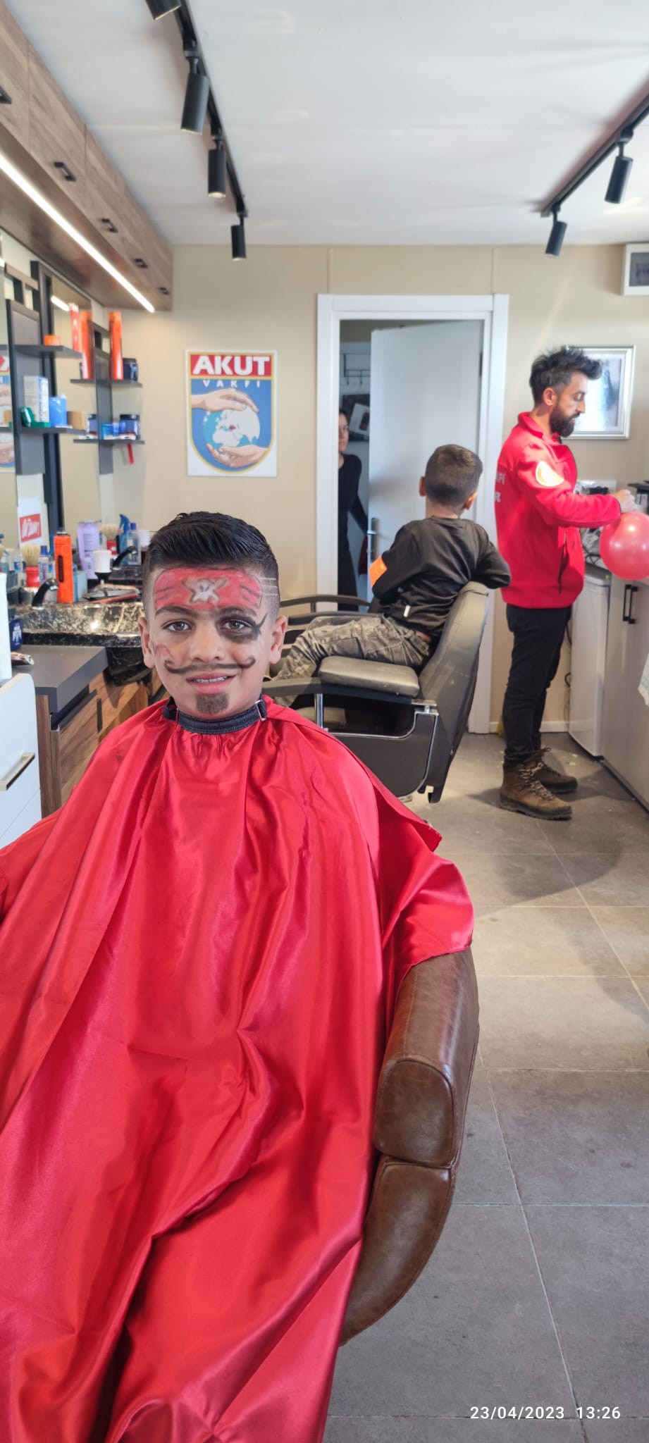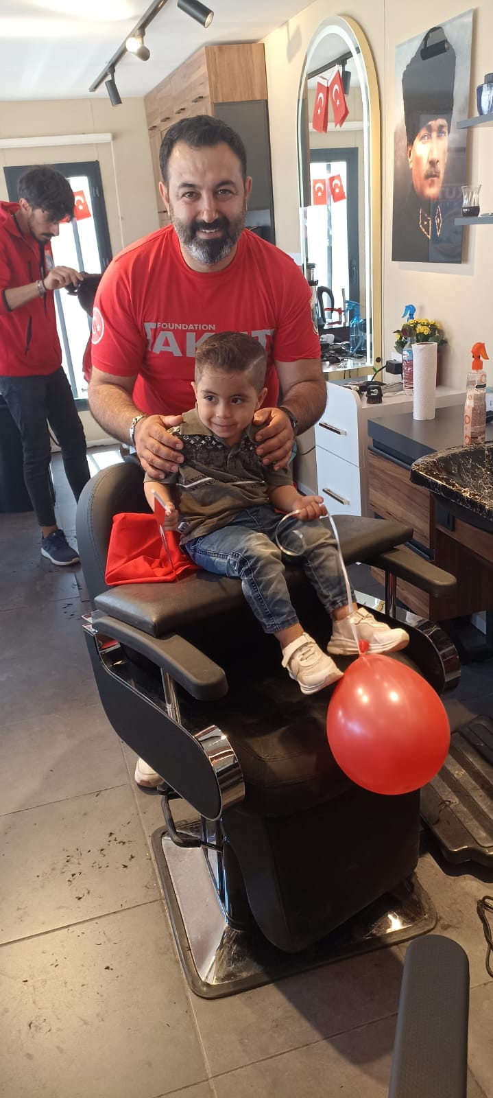 Hatay Antakya’da bayramın birinci günü kuaför/berber açan AKUT Vakfı, 23 Nisan Ulusal Egemenlik ve Çocuk Bayramı’nda sadece çocuklara hizmet verdi.