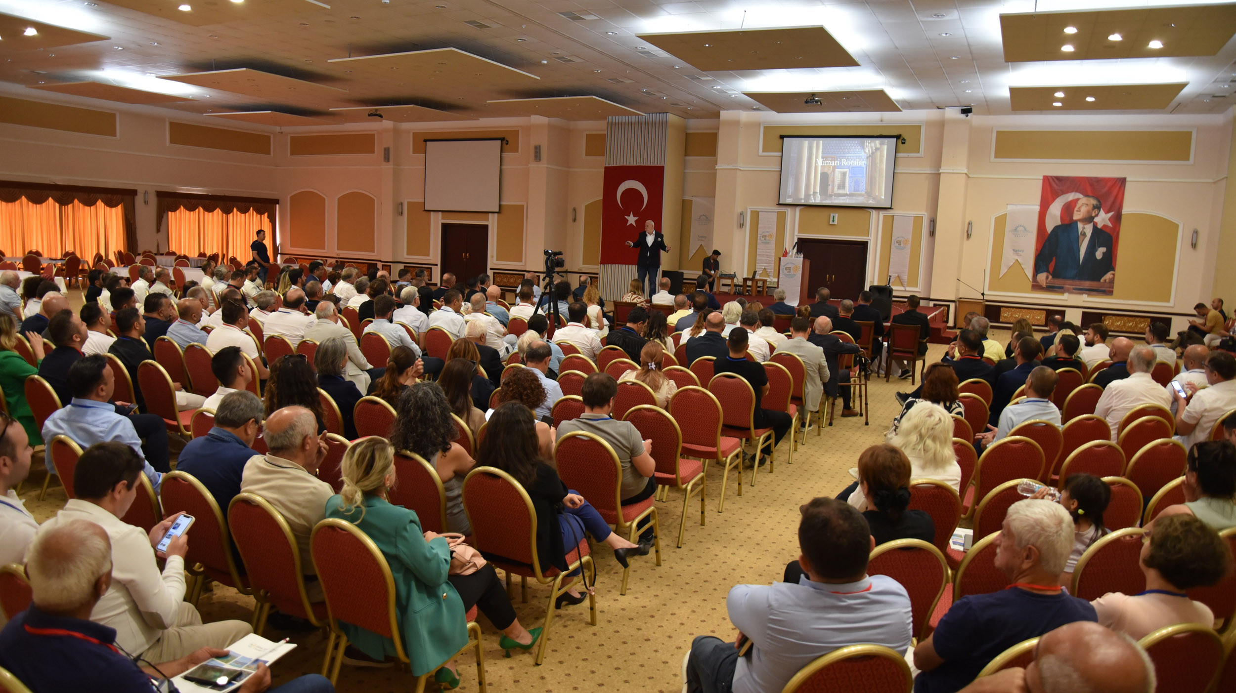 Değerli dostlar, bunun yanında gayrimenkul sektörümüz var. Fakat bugün çalıştığımızın konusu ve içeriğinde gayrimenkul geçmiyor. Gayrimenkul iktisadi büyüklük olarak turizmden sonra gelen önemli bir ekonomi. Gayrimenkul yerine turizmin tarımın ve bu kentin sürdürülebilirliği noktasında kentleşme başlığını koyduk. Buradaki temel amacımız kentin kentsel planlamasından ulaşımına, sosyal ve kültürel alanlarına, kimliğine, kentsel tasarımına kadar konuları tartışalım. Bunlar da turizmi olumlu ya da olumsuz etkiliyor. Bir belgeselde Endülüs Emevîlerinin olduğu Toledo ve Granada bölgesini izledim. Sokaklar turist kaynıyor. Bundan 300 yıl önce yaptıkları sokaklara, meydanlara, caddelere hayran olmamak imkânsız. Biz de binlerce bina yaptık. Bırakalım Ülkeyi, Didim için söylüyorum; son 20 yılda on binlerce bina yaptık. Nüfusumuzu 5 katına çıkardık. İçinde bir tane mimari eser var mı? yok! niye yok? böyle bir kaygı yok! Sayın Başkanım Didim’de artık mimari kimliği olmayan caddeler sokaklar olmamalı. Ona bir dur demek lazım. Çalıştığımız temel fikirlerden bir tanesi bu kötü gidişe müdahale etmek ve bunun yönünü rotasını değiştirmek. Dünyanın bir ucundaki kelebeğin dünyanın diğer ucunda kasırga oluşturma ihtimalinde olduğu gibi.