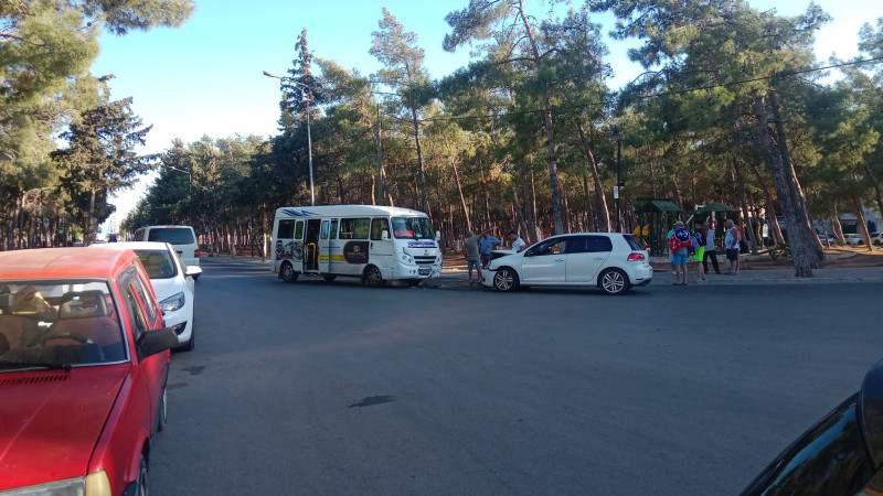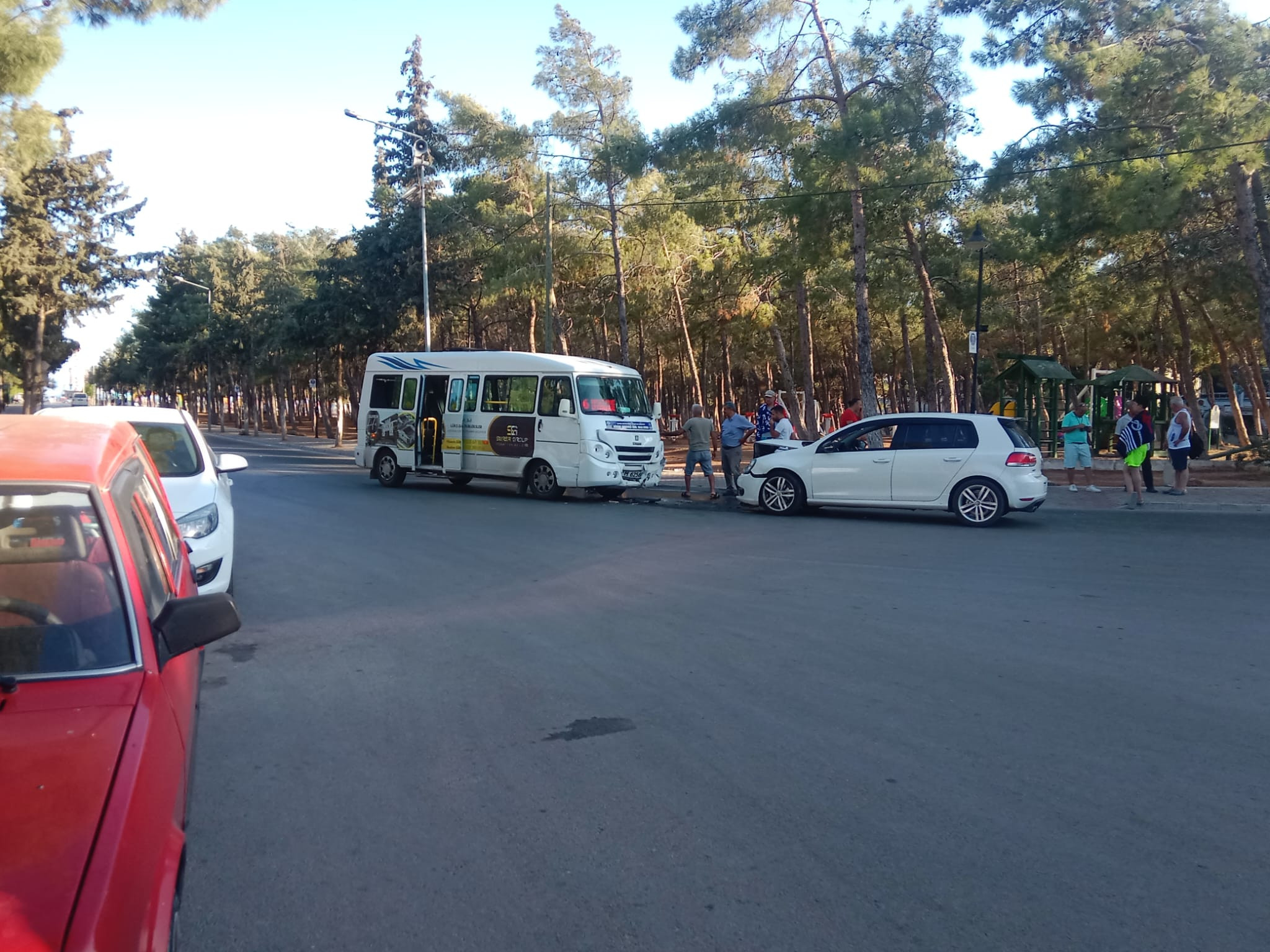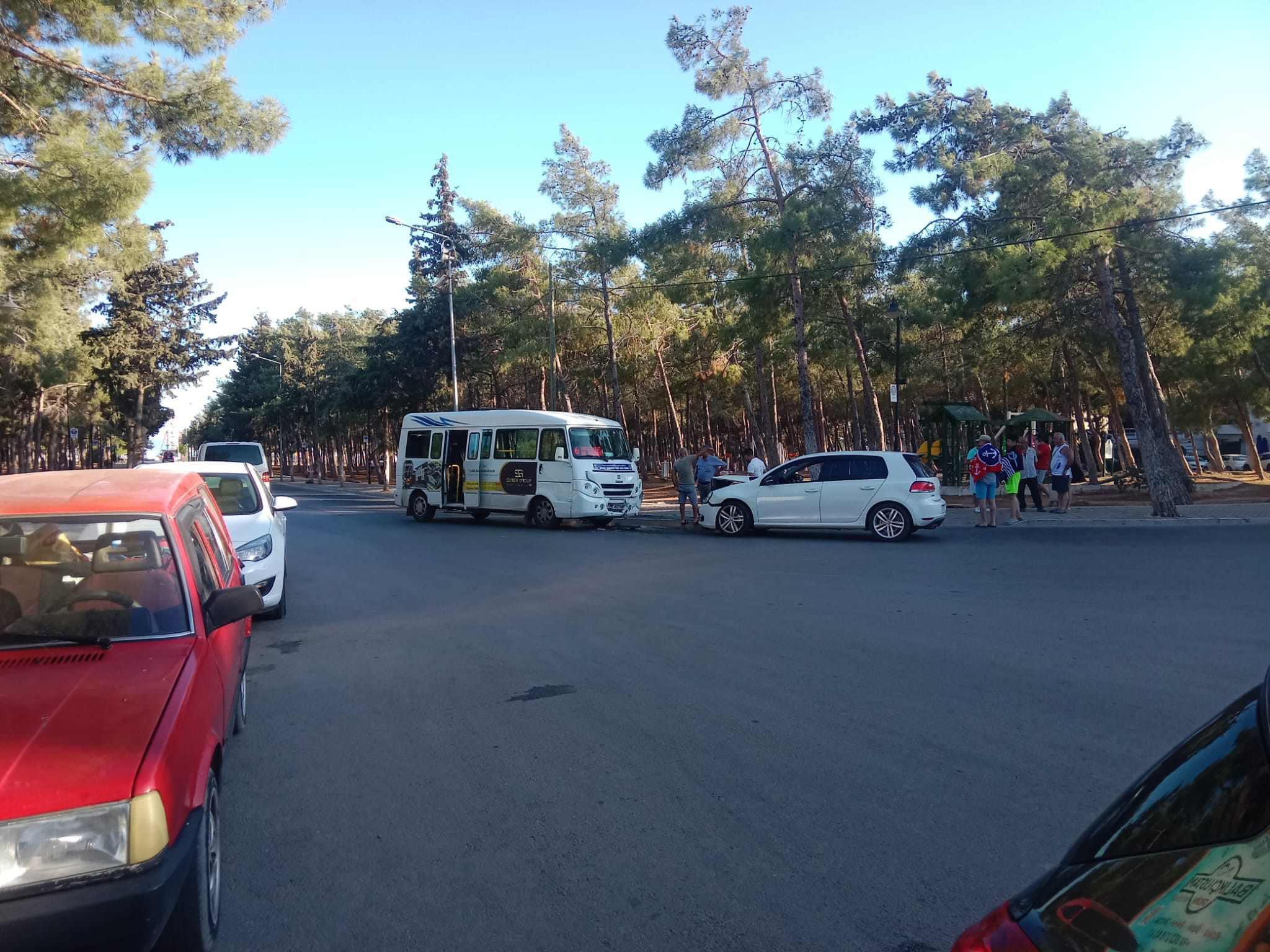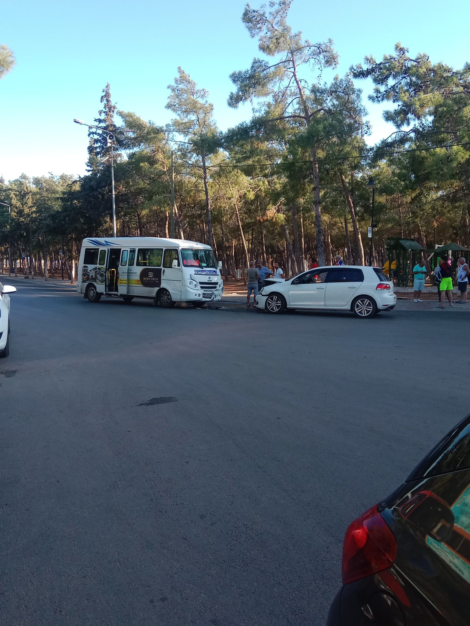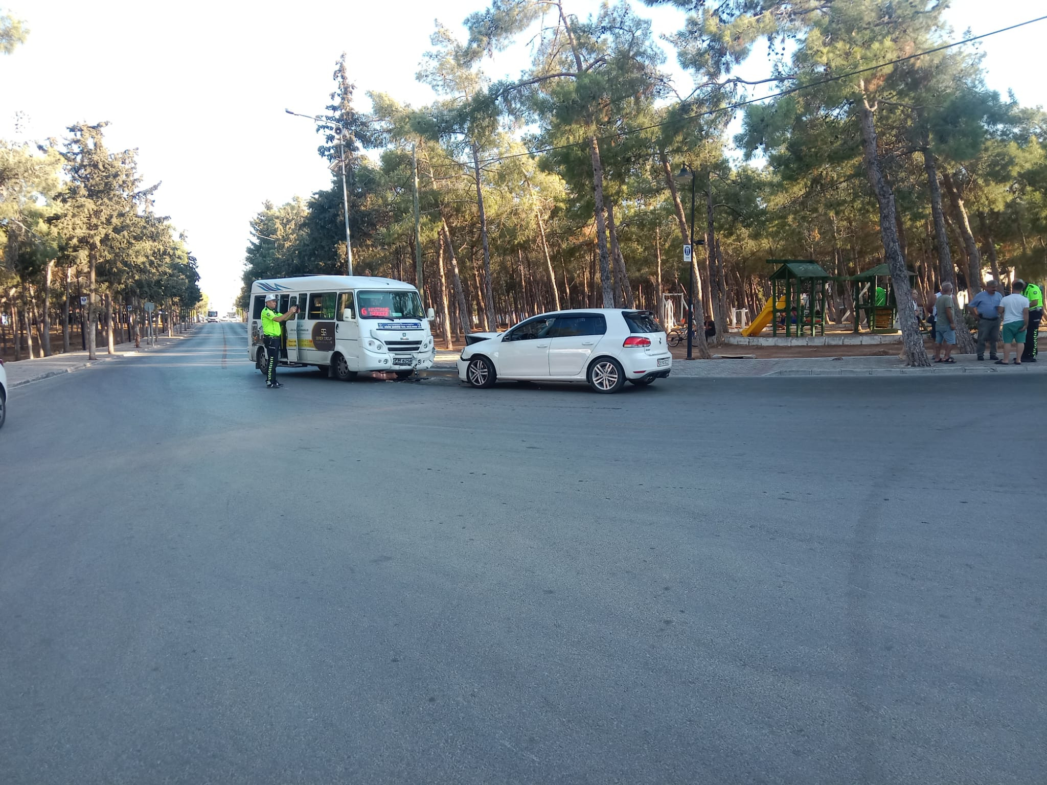 Aydın Didim Çamlık Mahallesi'nde çamlık korusu mevkiinde şehir içi minibüsüyle özel otomobil çarpıştı.