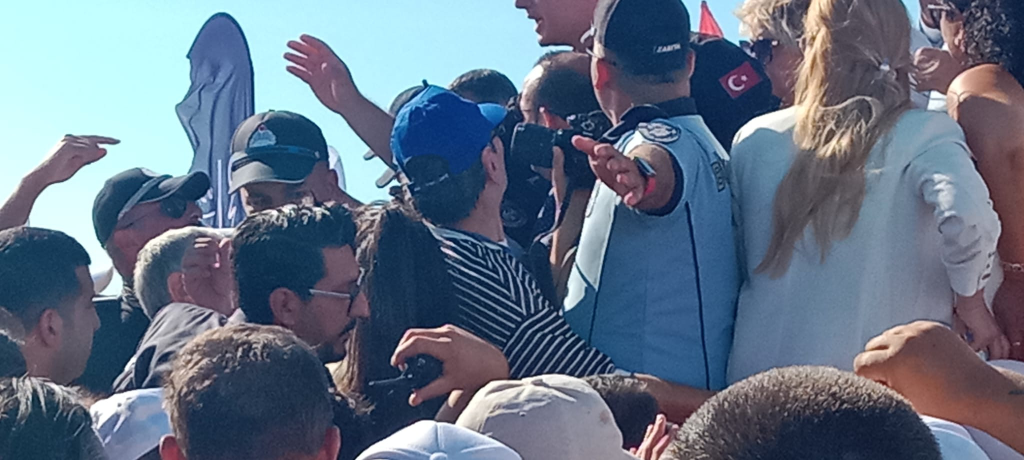 Törenin yapılacağı alana geldiğimde bazı gazetecilerin alana girmekte zorlandığını gördüm.