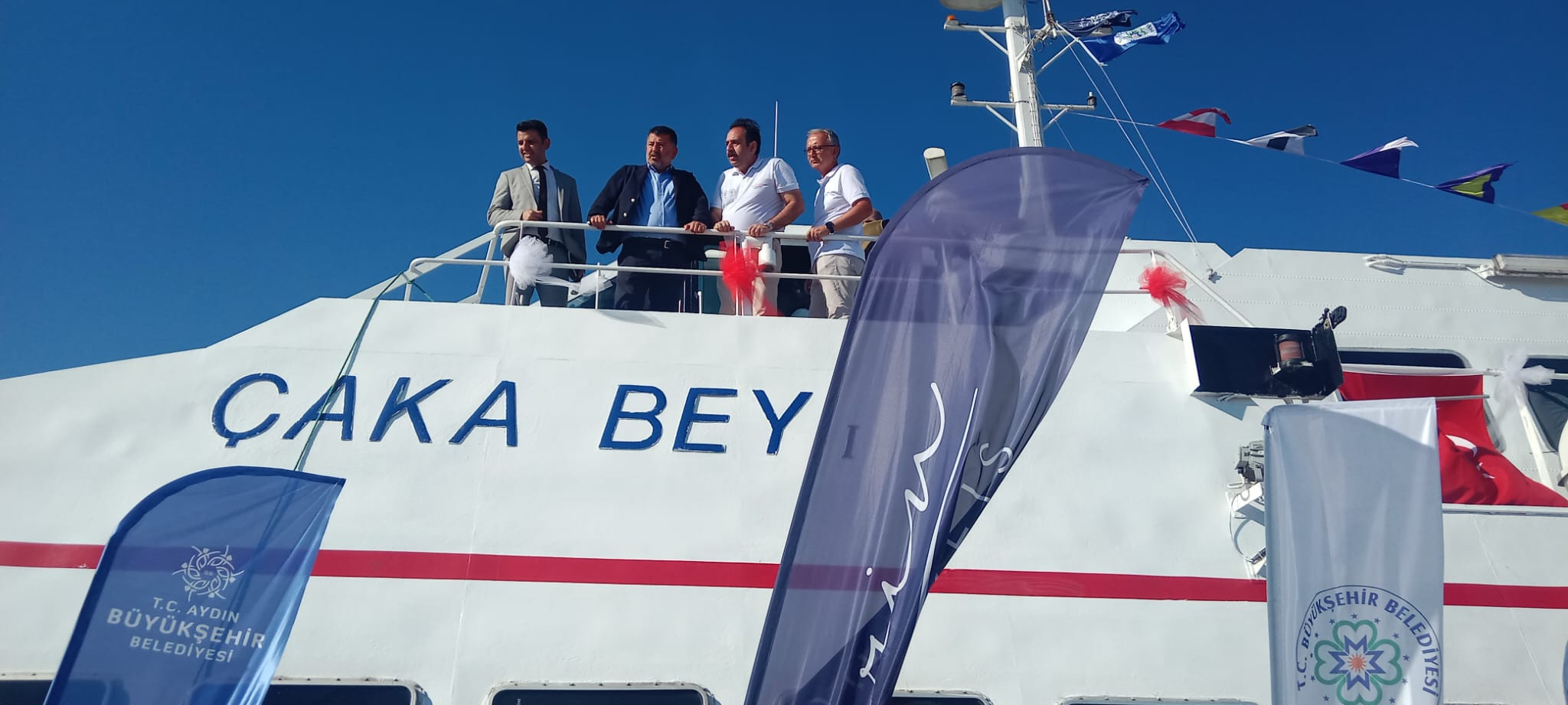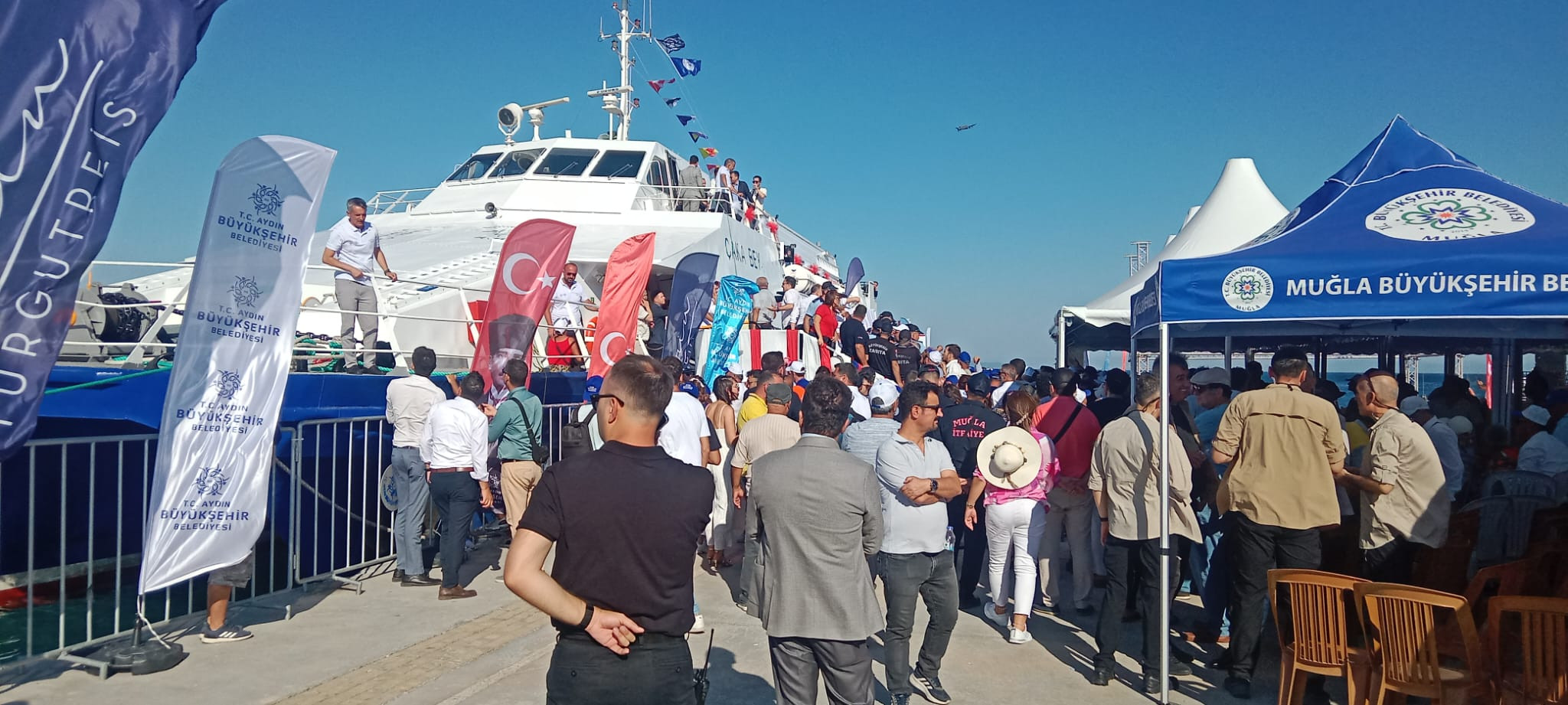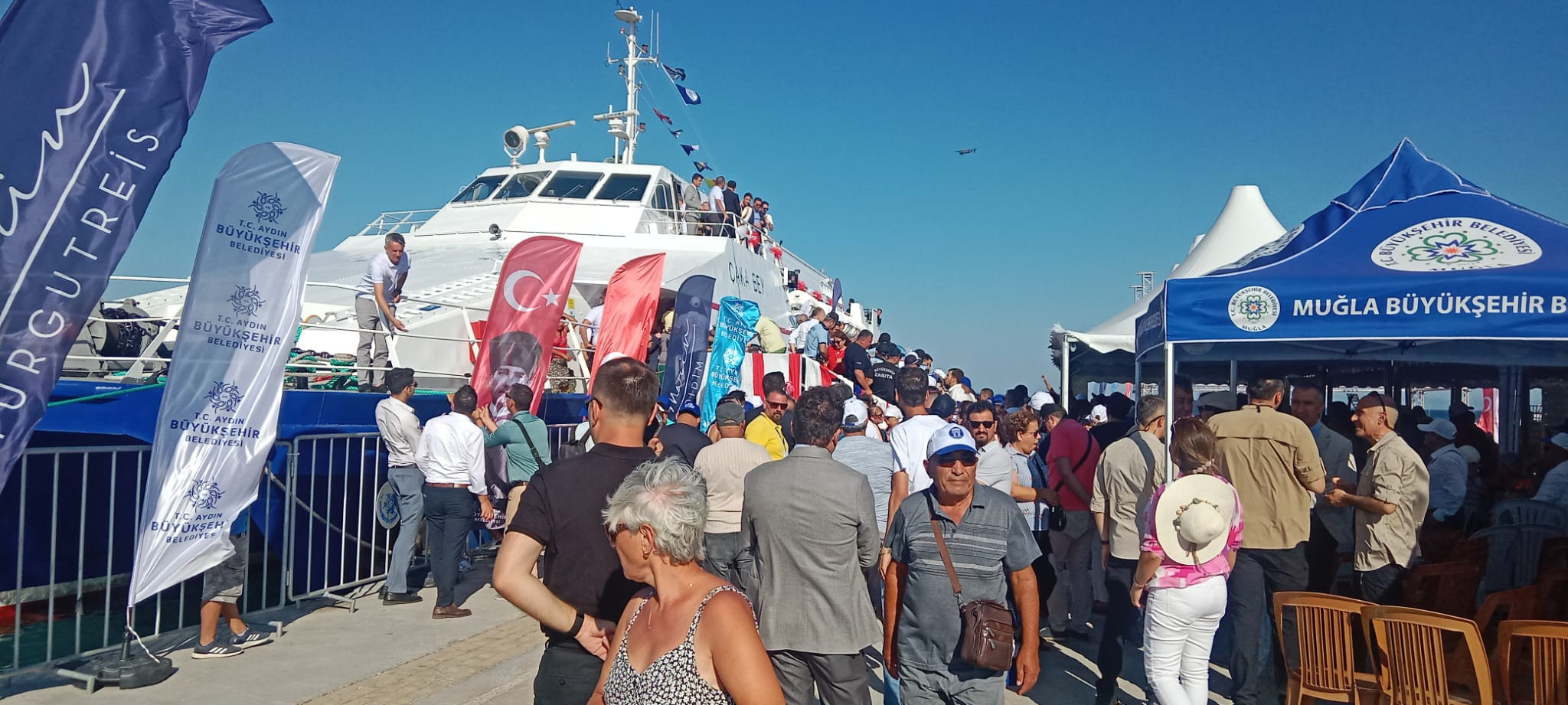 Program devam ederken İzmir Basını feribota alındı, Aydın yerel basını uzaktan izledi.