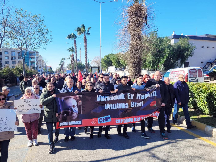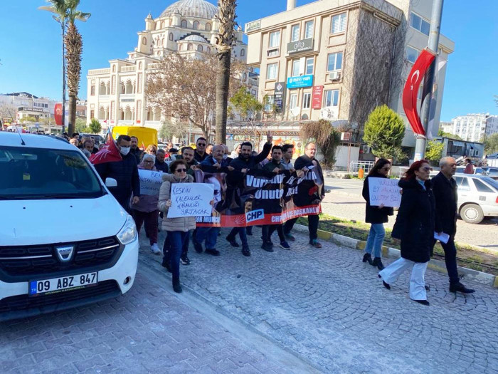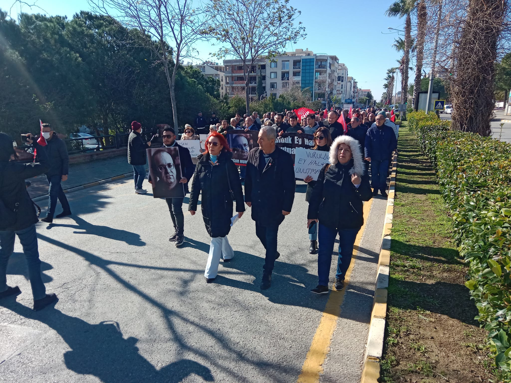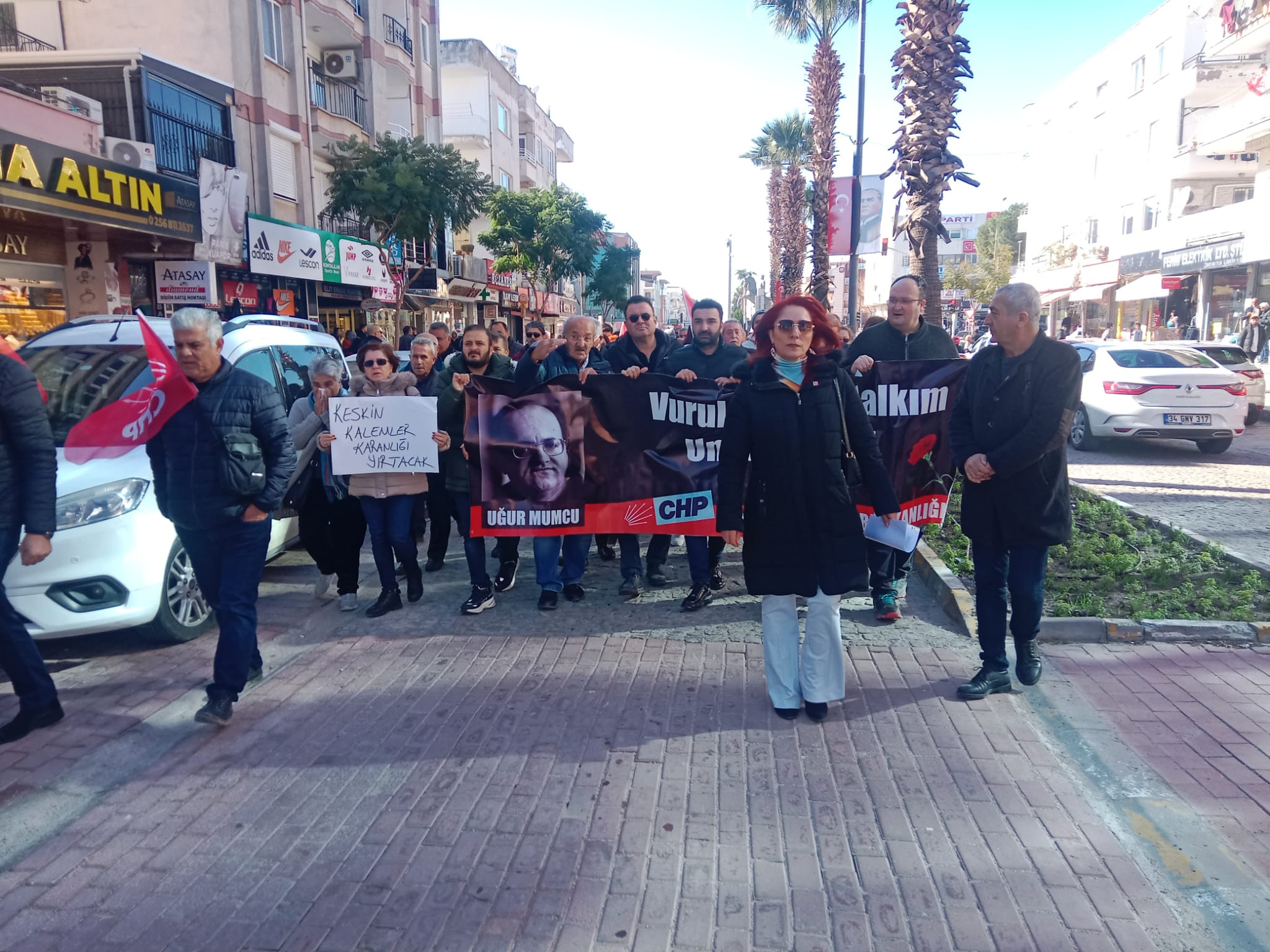 CHP İlçe Başkanlığı önünde toplanan halk, Uğur Mumcu Anıtına kadar ellerinde pankart ve dövizlerle yürüdüler.