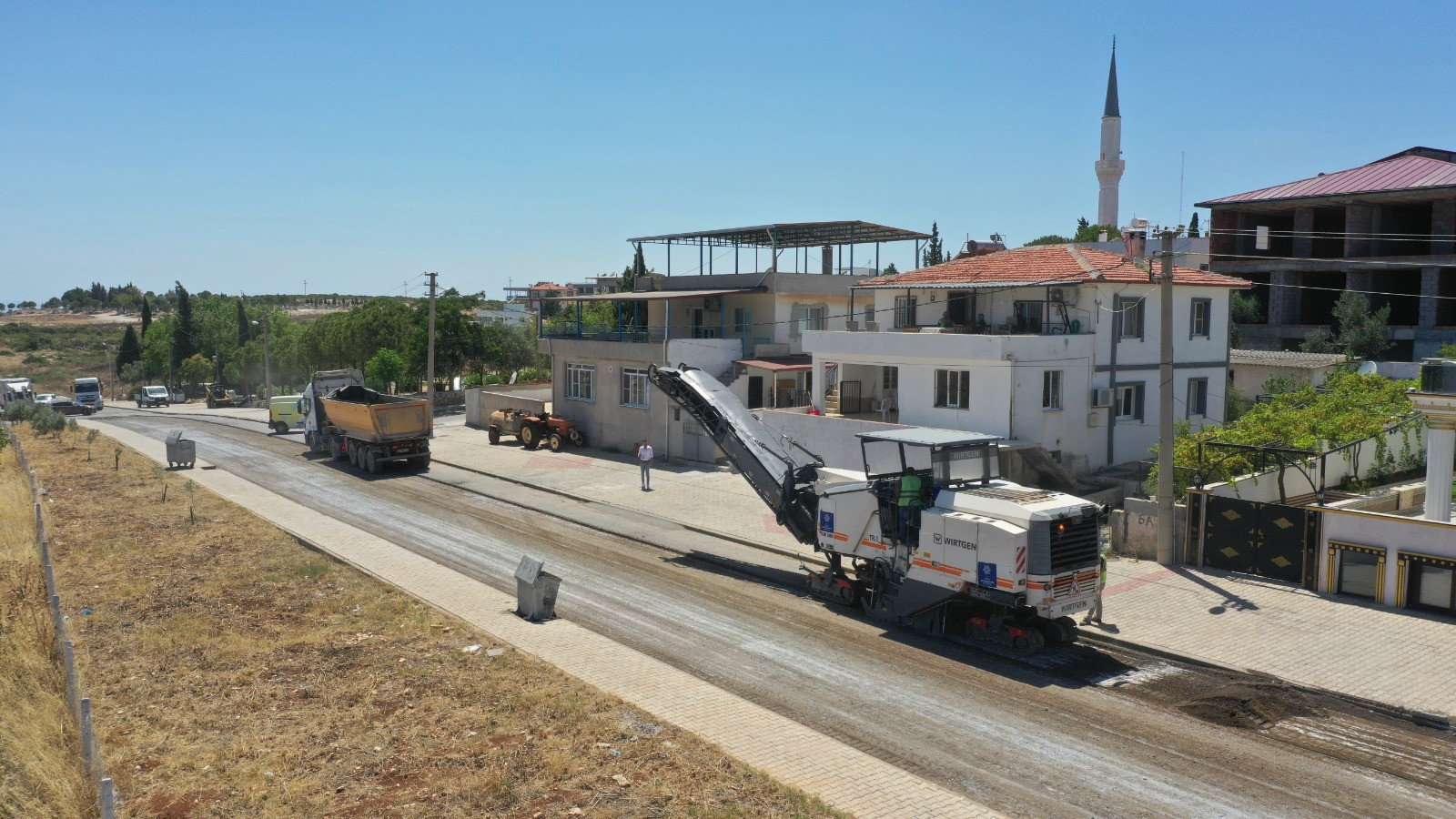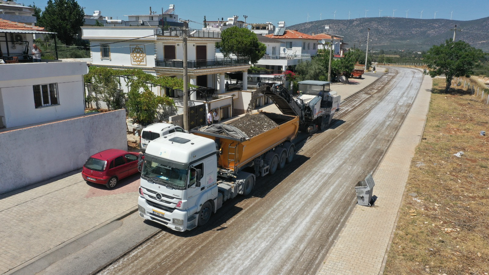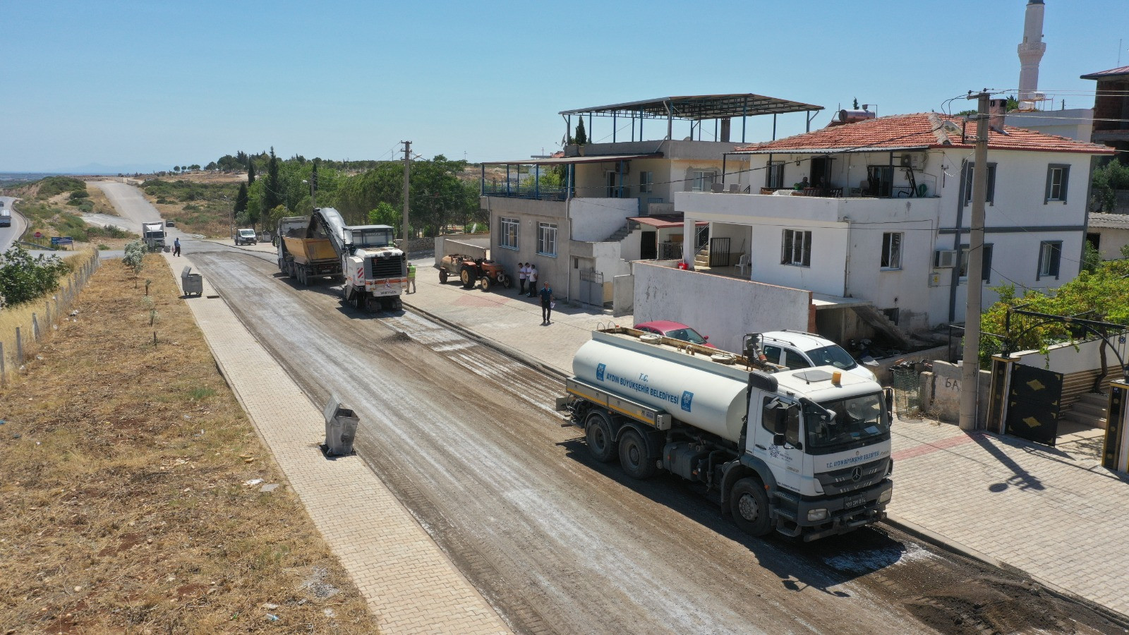Aydın genelinde eş zamanlı olarak farklı noktalarda yol yapım çalışmalarını planlı ve hızlı bir şekilde gerçekleştiren Aydın Büyükşehir Belediyesi Fen İşleri Dairesi Başkanlığı Yol Yapım ve Bakım Şube Müdürlüğü ekipleri, Didim Denizköy Mahallesi Atatürk Caddesi’ni yeniliyor.