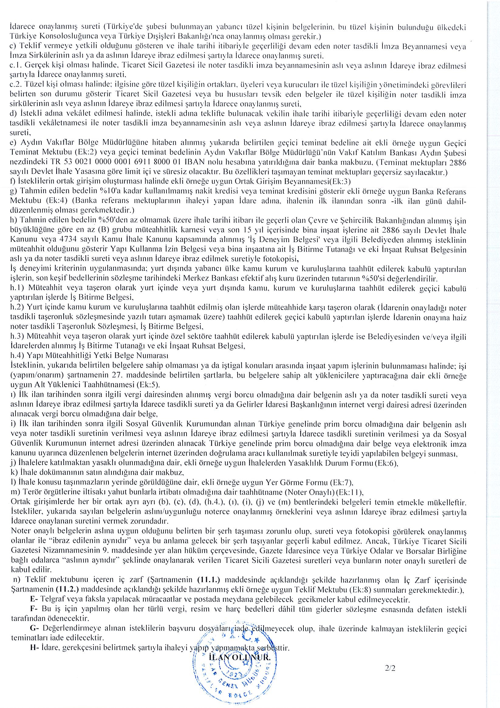 İhale şartnamesini aşağıdaki pdf dosyalarında görebilirsiniz.