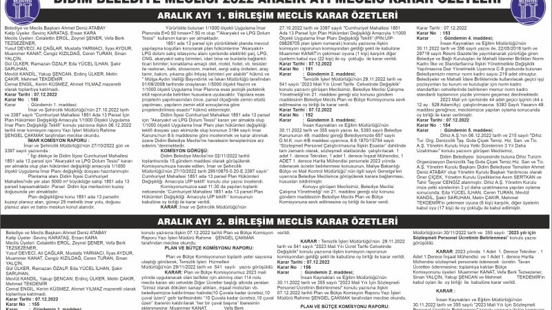 DİDİM BELEDİYESİ ARALIK AYI 1. VE 2. BİRLEŞİM MECLİS KARAR ÖZETLERİ