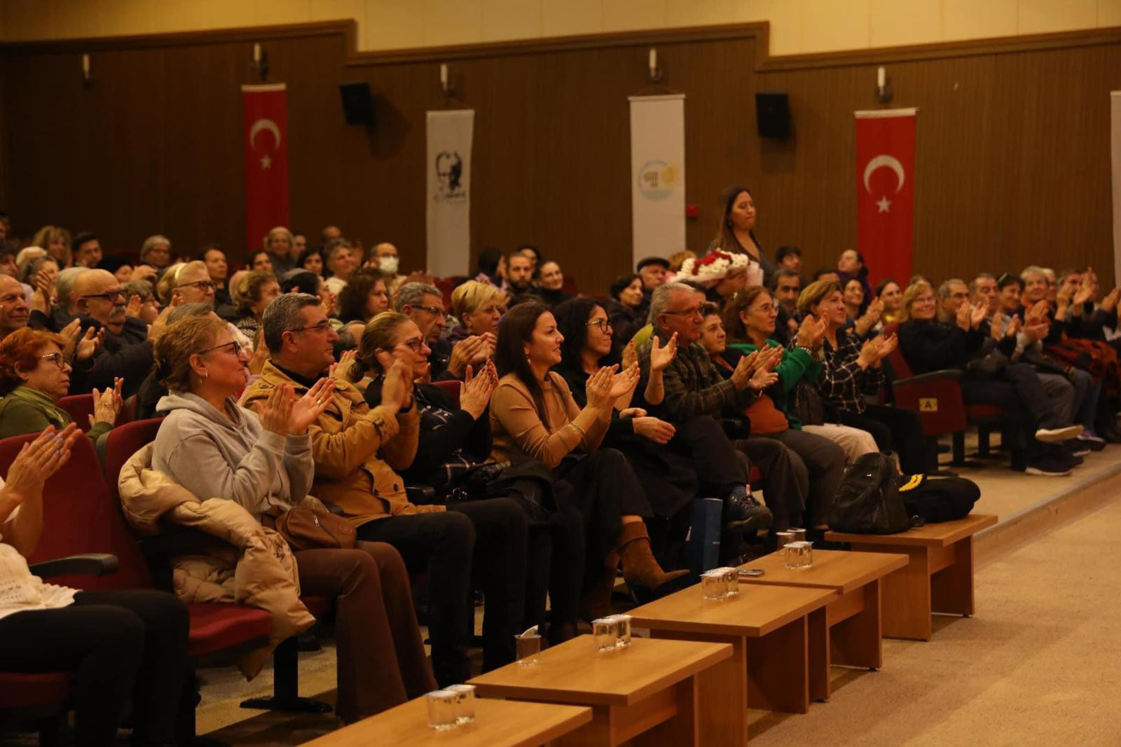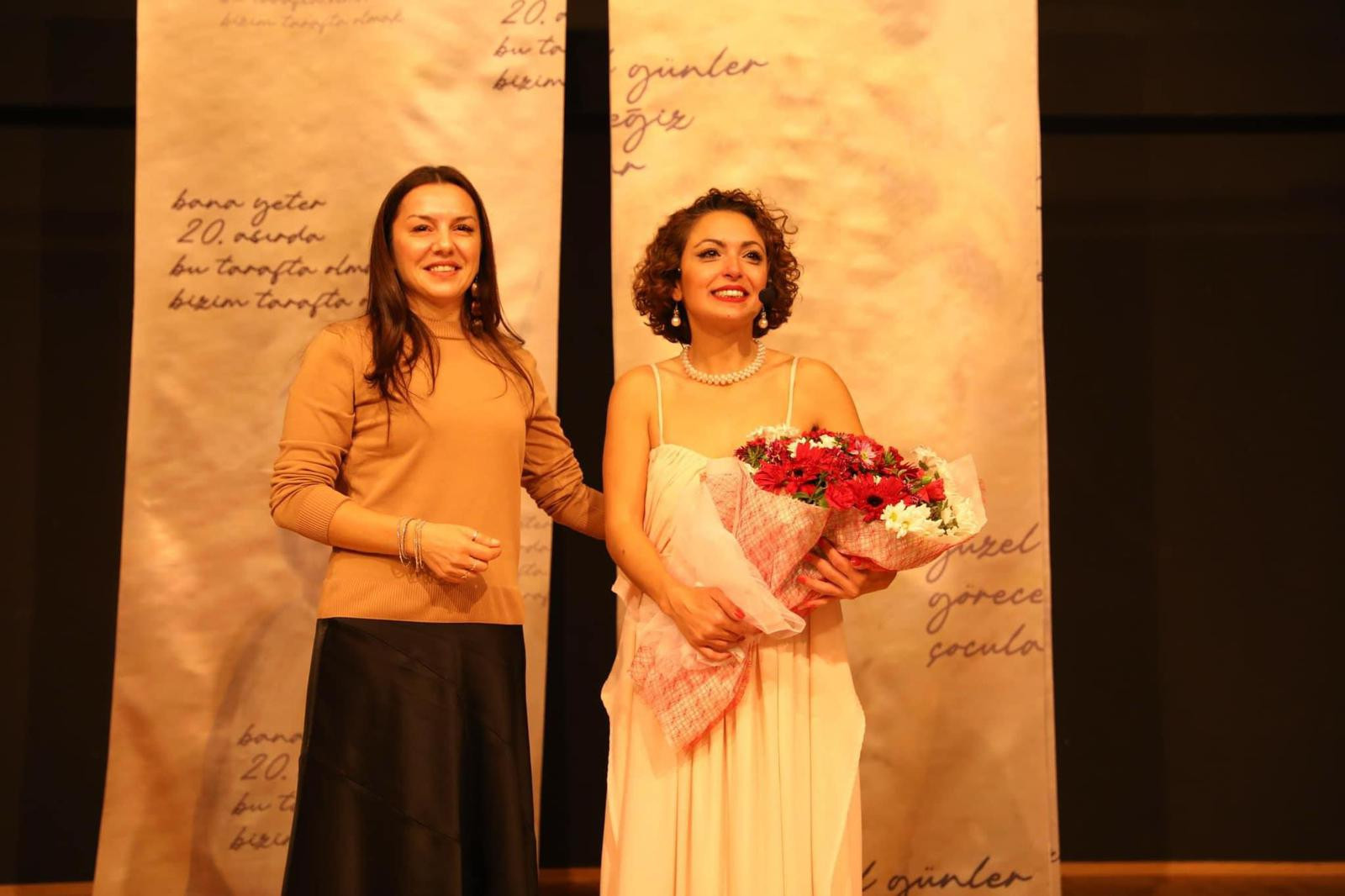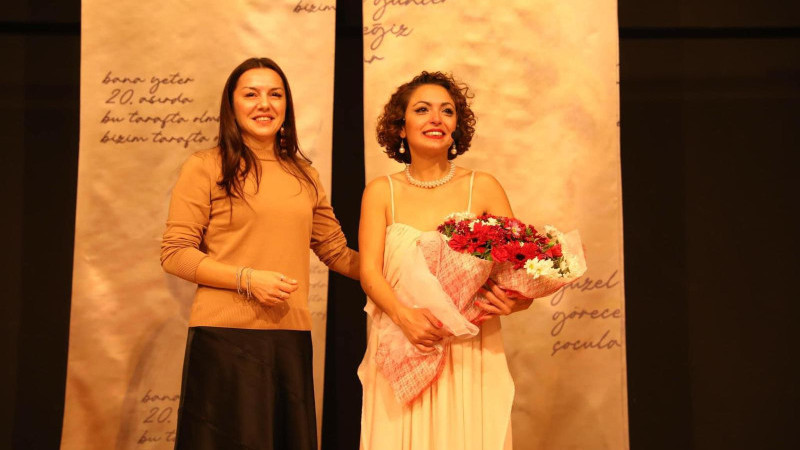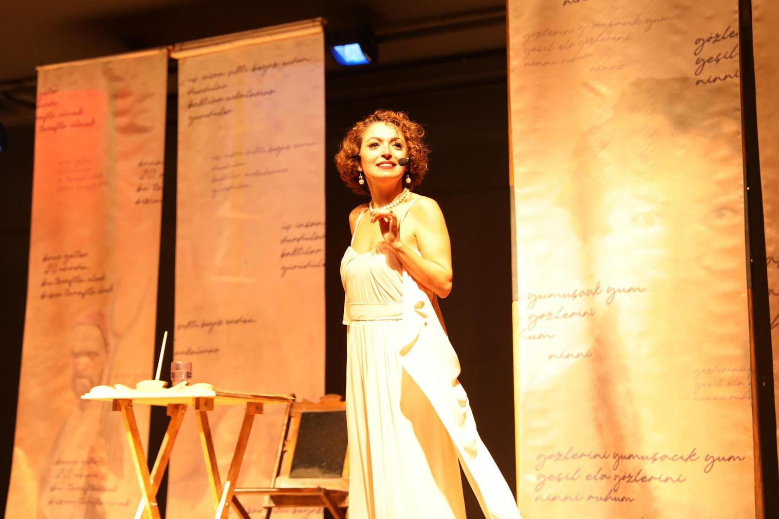 Tiyatro oyununun sonunda Didim Belediye Başkan Yardımcısı E. Öznur Gündoğdu, Celile karakterine hayat veren ünlü oyuncu Ayşegül Yalçıner’e çiçek takdim etti.
