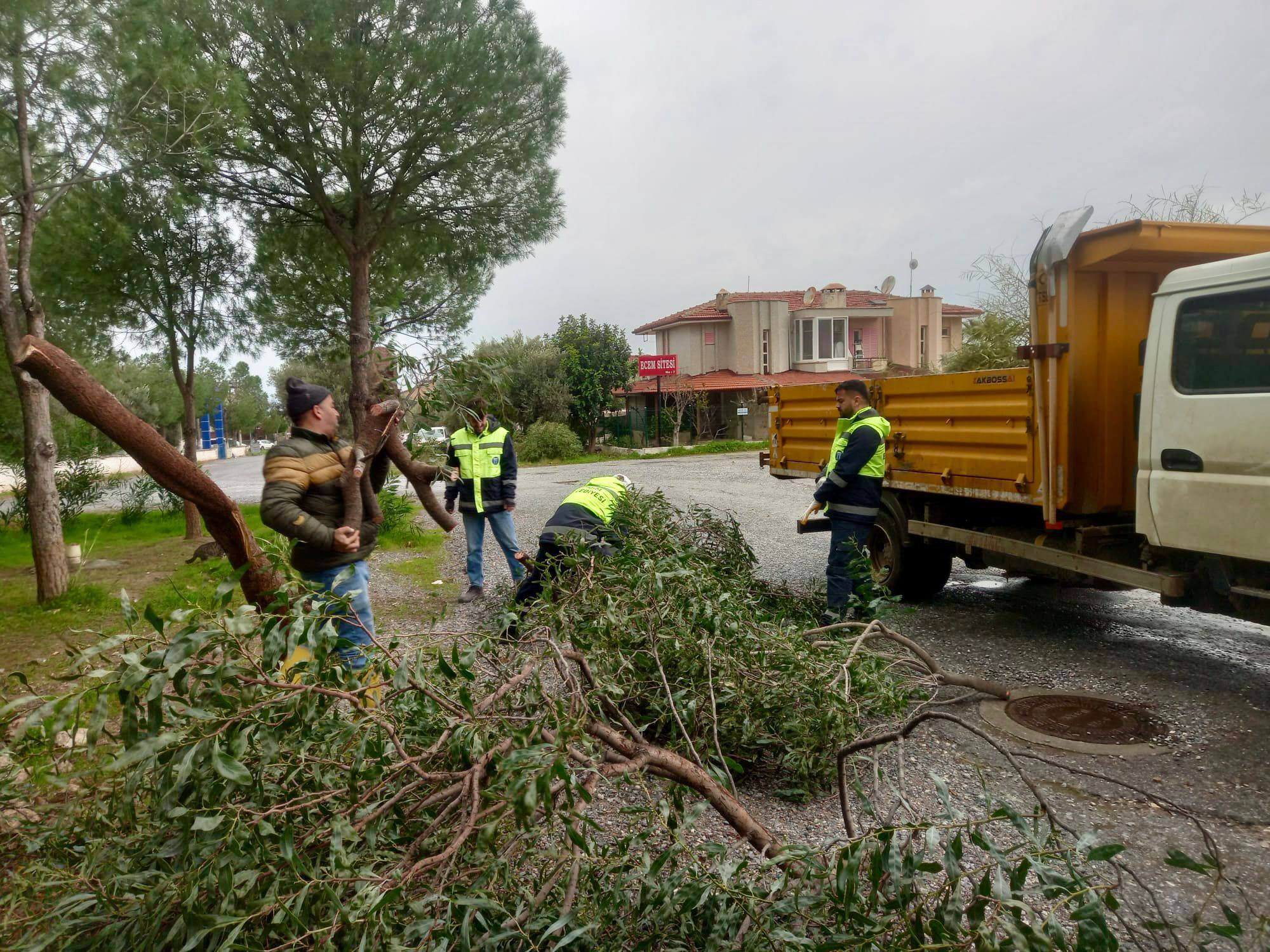 Halkın olumsuz hava koşullarından en az düzeyde etkilenmesi, can ve mal güvenliğinin korunması amacıyla teyakkuza geçen belediye ekipleri, ilçenin farklı noktalarında fırtına nedeniyle devrilen ağaçlara ve yağış sonucu oluşan su birikintilerine hızlı ve etkin şekilde müdahale etti.