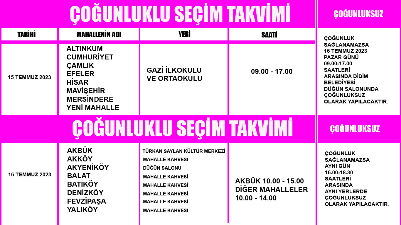 16 Temmuz 2023 Pazar günü ise Didim'in dış mahallelerinde delege seçimi yapılacak.