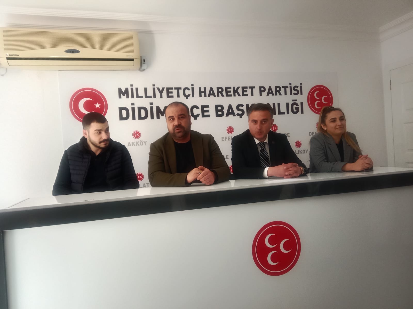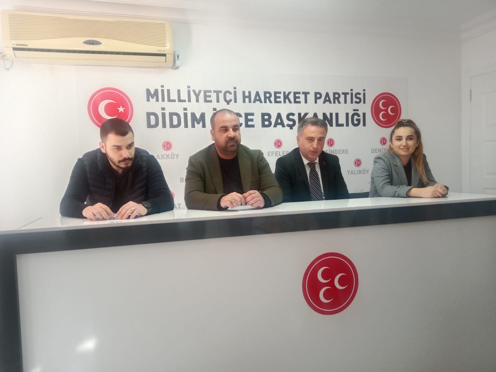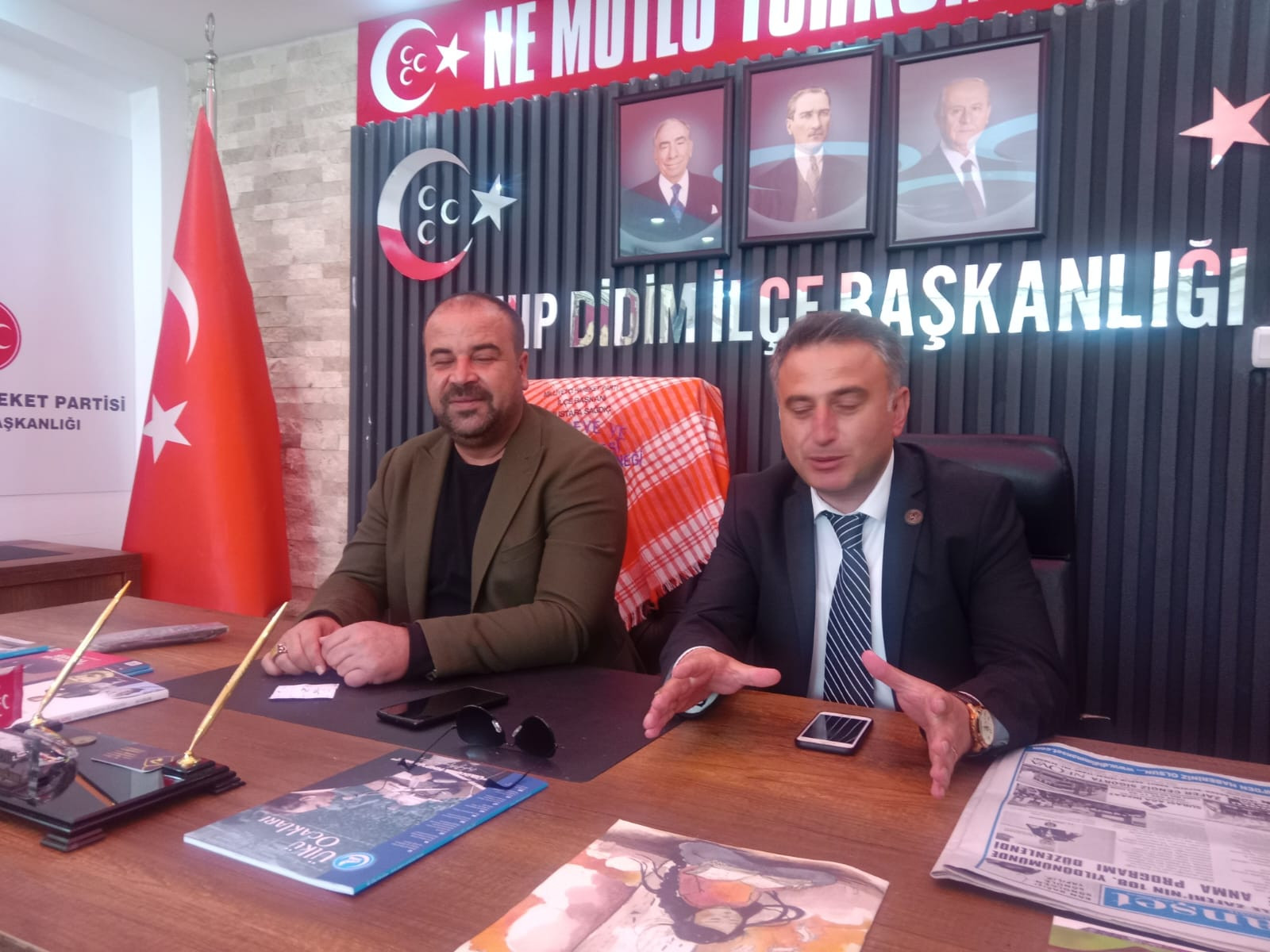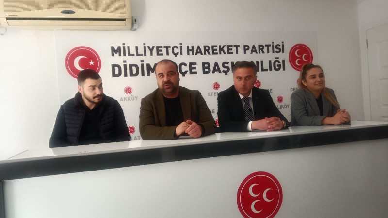 Basın toplantısında konuşan MHP İlçe Başkanı Mustafa Sağdıç, göreve geldikleri günden bu yana hep birlikte çalışma ve gayret içerisinde olduklarını ifade ederek “İlimiz, ilçemiz ve partimiz için çalışmalar yaptık. Bu azim ve gayretle Aydın’ın en büyük ilçelerinden birisi durumunda olan Didim’de de partimizden birisinin aday adayı olması konusunda fikir alışverişinde bulunduk. Sıralamada nerede olursa olsun biz var gücümüzle çalışacağız. Bu noktada Çetin Durmaz ağabeyimiz yola çıktı. Ankara’da dilekçemizi verdik; süreci tamamladık. İlçemize, ülkemize ve partimize hayırlı olsun.” dedi.