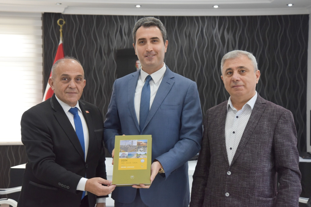 Didim Ticaret Odası Yönetim Kurulu Başkanı Hilmi Erbaş ve Didim MYO Müdürü Öğr. Gör. Dr. Nimet Çavuş Didim Kaymakamı Can Kazım Kuruca’yı makamında ziyaret ederek Sempozyum Kitabını takdim etti.