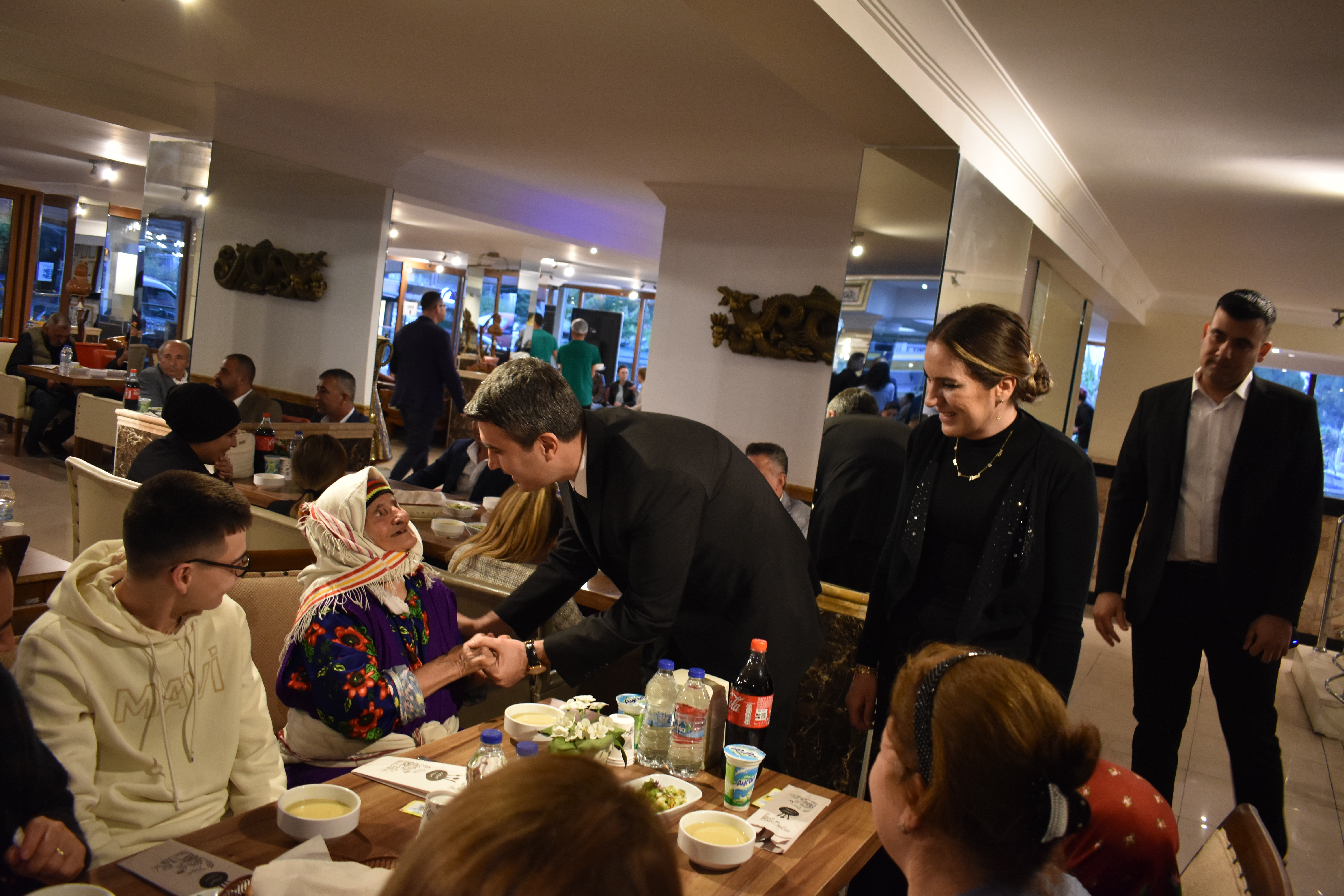Didim Altınkum Temple Miletos Hotel'de gerçekleştirilen iftar yemeğine Didim Kaymakamı Can Kazım Kuruca ve eşi, Didim Garnizon Komutanı Albay Ali Saçan ve eşi, Didim Belediye Başkanı A. Deniz Atabay, İlçe Emniyet Müdürü Yunus Dinç, İlçe Jandarma Komutanı M. Gani Solak, CHP Didim İlçe Başkanı Nurettin Koçak, İYİ Parti İlçe Başkanı Vefa Berk Tezsezener, MHP Didim İlçe Başkanı Mustafa Sağdıç, MHP Aydın Milletvekili Adayı Çetin Durmaz, Didim’deki şehit aileleri ve yakınları ile gaziler ve yakınları katıldı. İlçe protokolü ayrı masalarda ailelerle birlikte iftar yemeğine oturdu. Ezanın okunmasıyla birlikte dualar edildi.