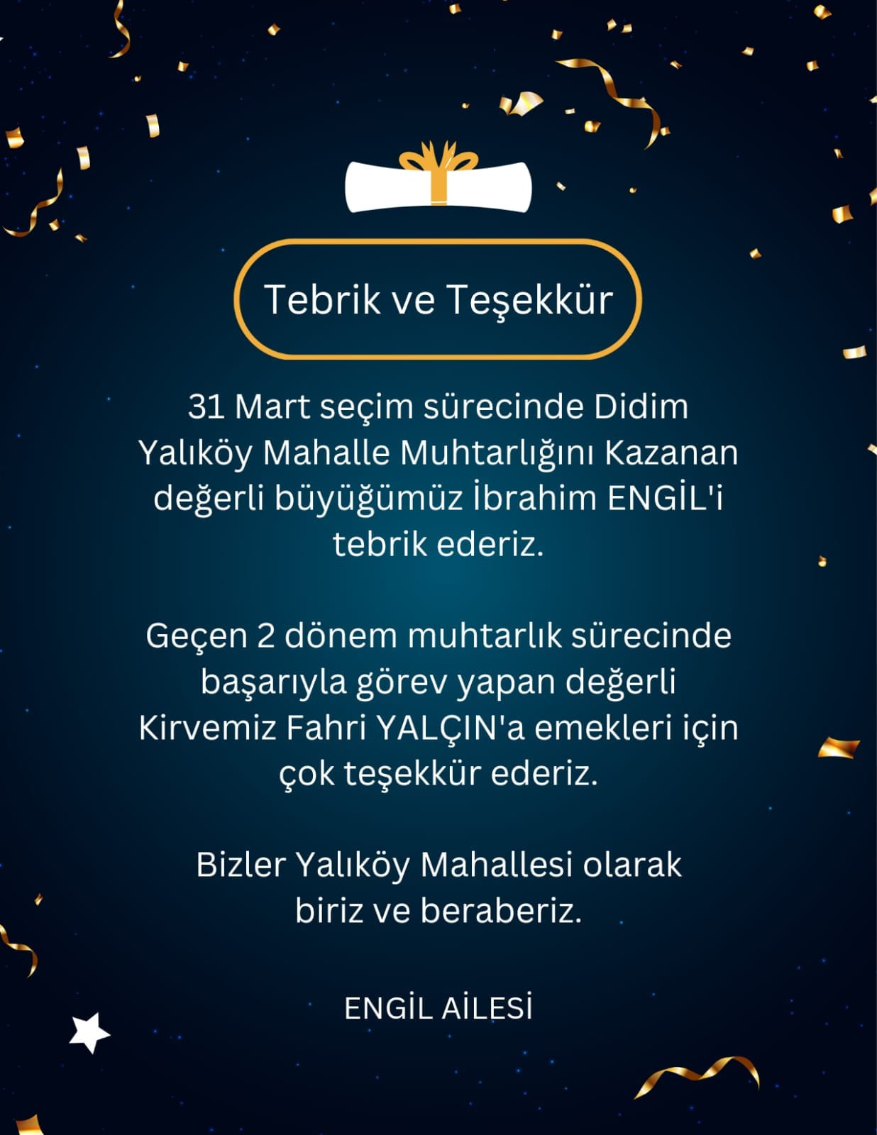 Didim Yalıköy'de muhtar değişti, Fahri Yalçın gitti, İbrahim Engil geldi.