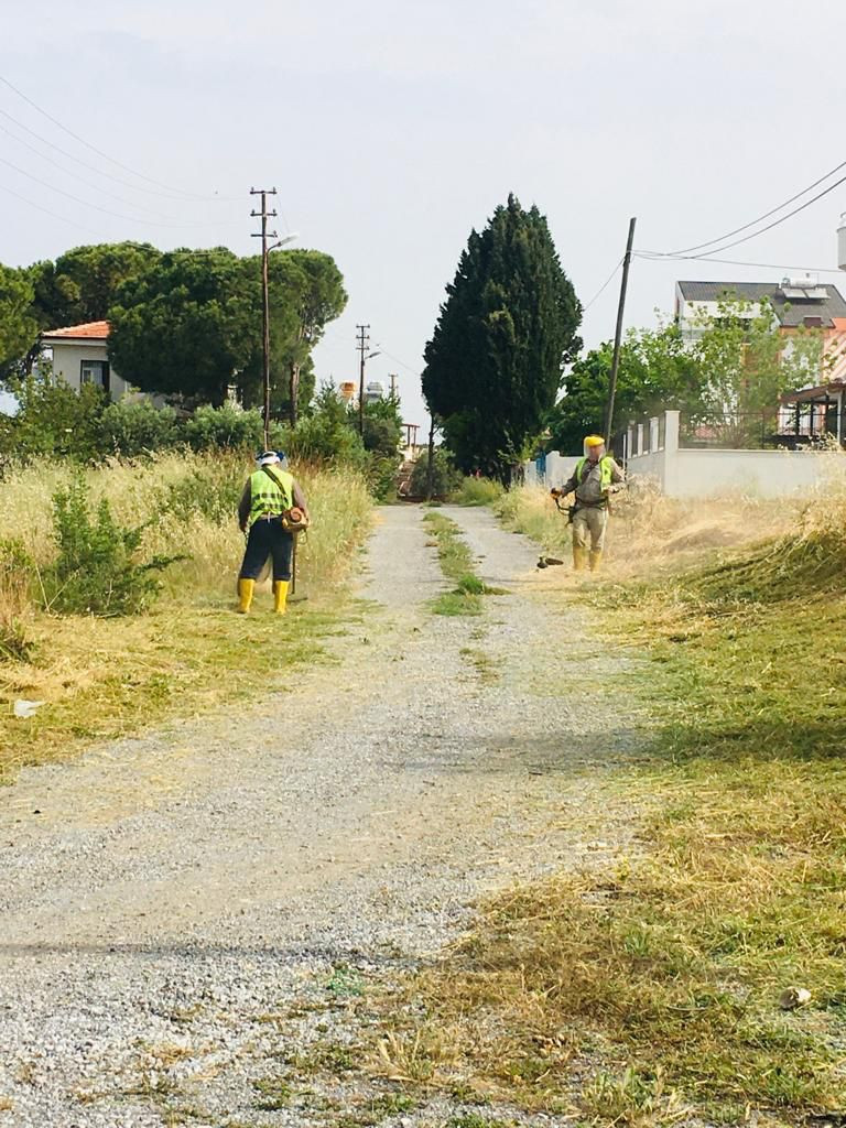 Didim'de ağaç ve ot budama çalışmaları yapılıyor.