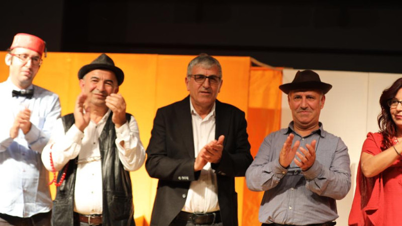 Didim Ticaret Odası Aytaç Nurullah Kocabıyık Kültür Merkezi'nde gerçekleştirilen etkinliğin sonunda Didim Belediye Başkan Yardımcısı Zeynel Şener, Didim Umut Tiyatrosu oyuncularını tebrik ederek çiçek verdi.