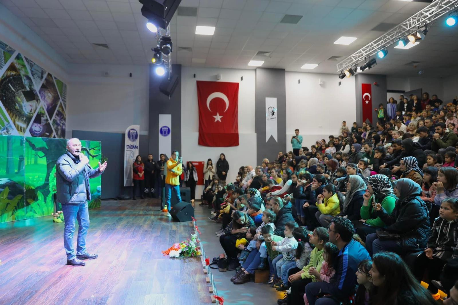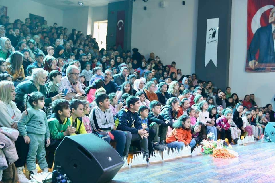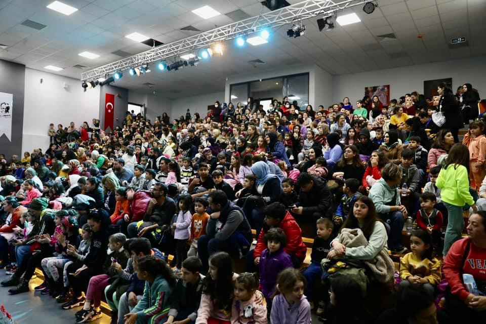büyük ilgi gördü. Salon tıklım tıklım dolarken, 2 seans olarak planlanan tiyatro etkinliği çocukların