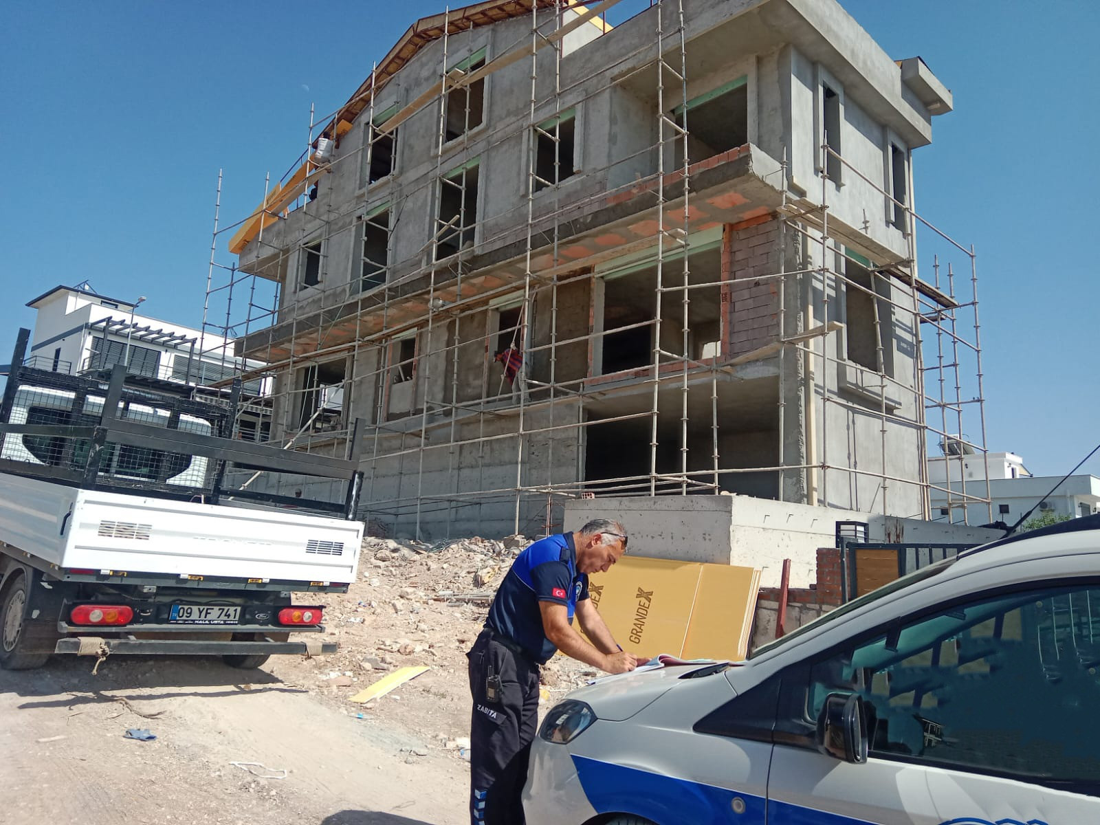 Didim Belediyesi Zabıta Müdürlüğüne bağlı ekipler tarafından yürütülen çalışmalar kapsamında, kent genelinde bulunan tüm inşaat alanlarında denetim çalışmaları aralıksız gerçekleştiriyor.