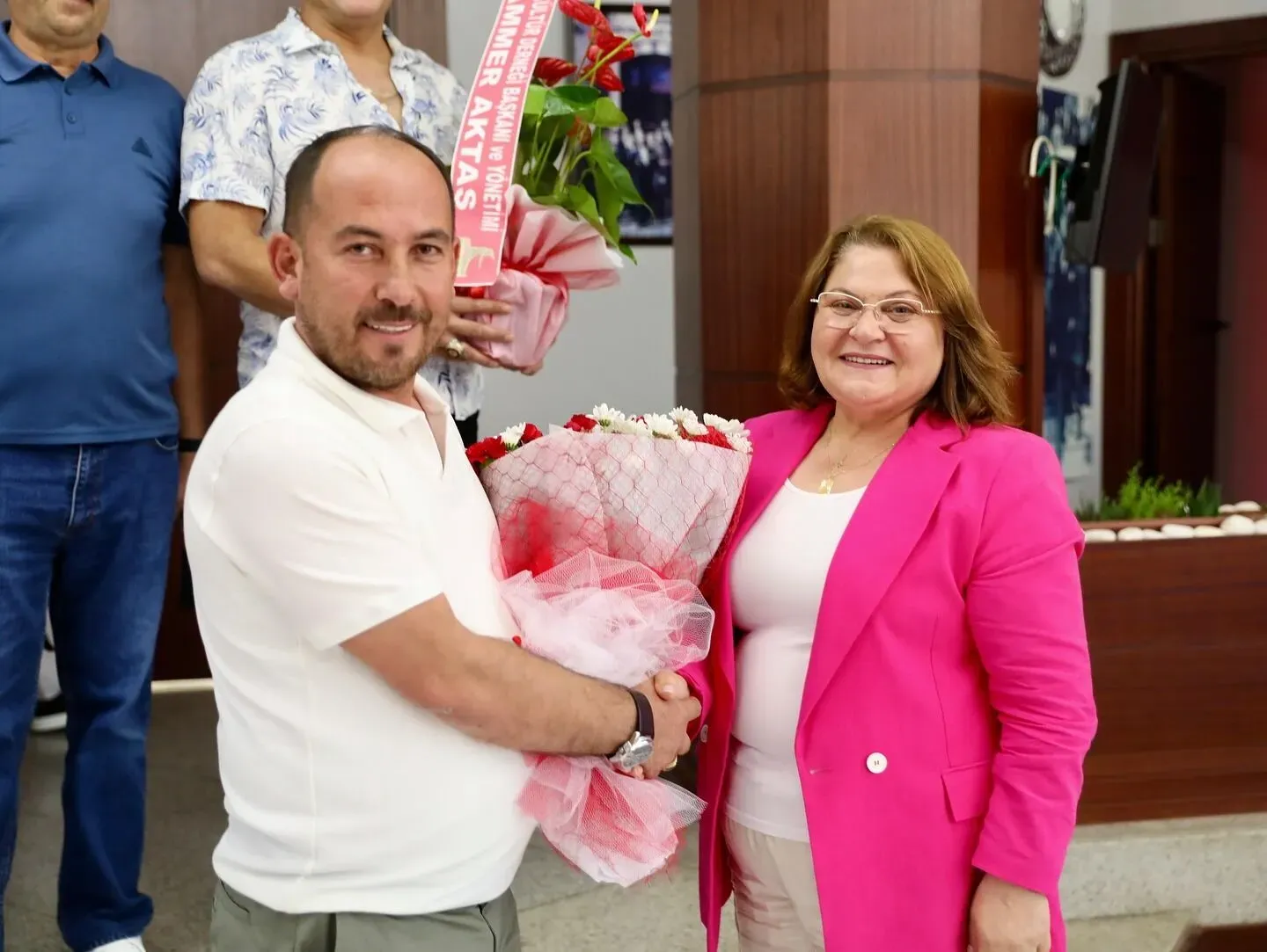 Ziyaret esnasında Dernek Başkanı Aktaş, Başkan Gençay’a çiçek vererek tebriklerini iletti.