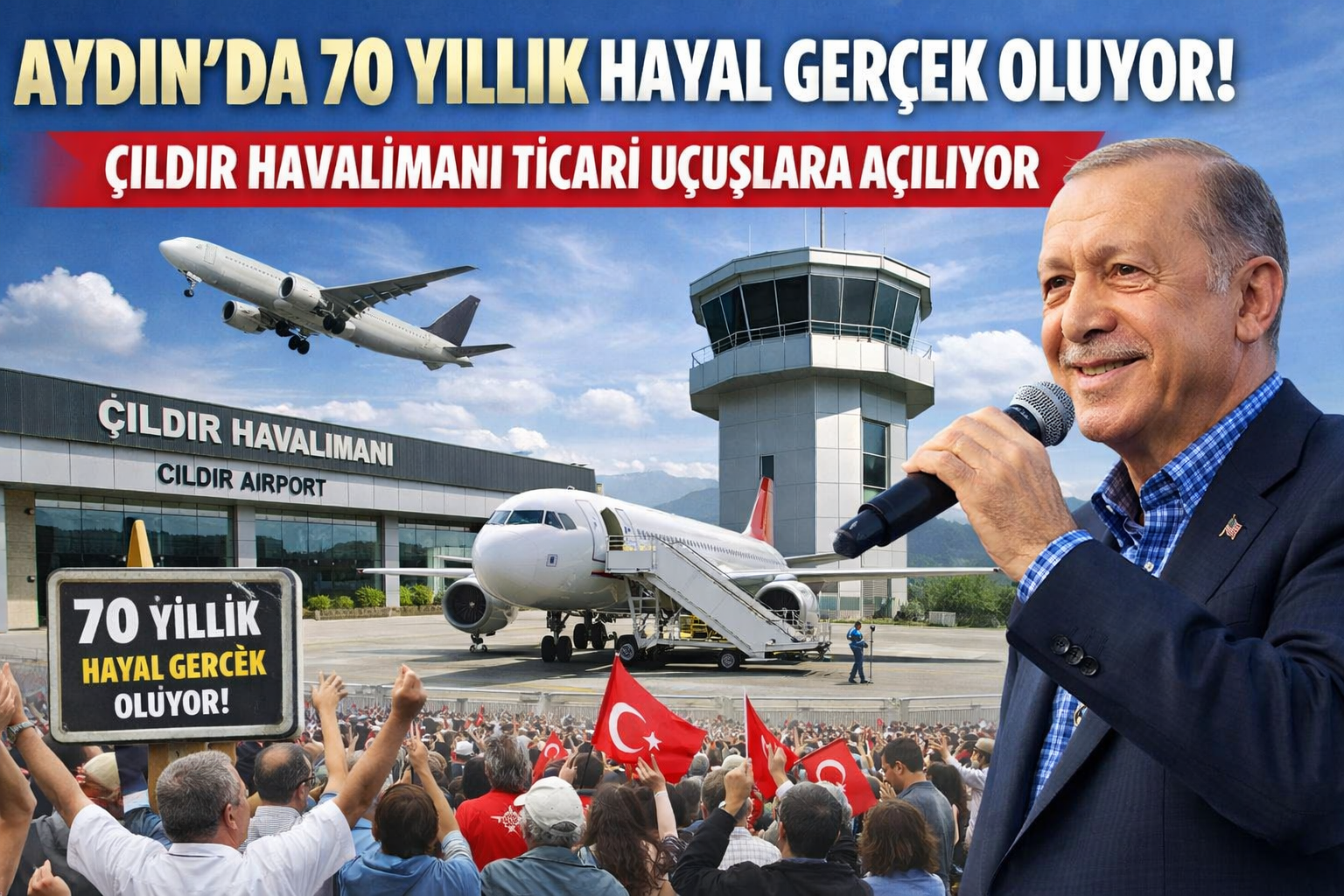 Aydın’ın Büyük Menderes’in bereketiyle, zeytiniyle, inciriyle, çalışkan insanıyla, Türkiye'nin yüz akı şehirlerinden biri olduğunu vurgulayan Erdoğan, “Adnan Menderes'in demokrasi bayrağını yükselttiği ve kalesi olarak gösterdiği Aydın'ın bizim gönlümüzde her zaman müstesna bir yeri vardır. Bir kez daha tarih ve medeniyet kokan ovasıyla, dağıyla, deniziyle eşsiz güzelliklere sahip bu güzel şehirde olmanın bahtiyarlığını yaşıyorum. Coşkunuz için, dayanışmanız için, sevginiz, heyecanınız, ahde vefanız için her birinize ayrı ayrı teşekkür ediyorum. Sizin şu güveninizi boşa çıkarmamanın çabası içindeyiz. Aydın'a mahcup olmamak, Aydın'ı mahcup etmemek için. Gece-gündüz demeden çalışıyoruz. Büyükşehir Belediyemiz bir taraftan, Valiliğimiz diğer taraftan, Bakanlıklarımız öbür taraftan, Aydın için seferber olmuş durumdalar.” diye konuştu.