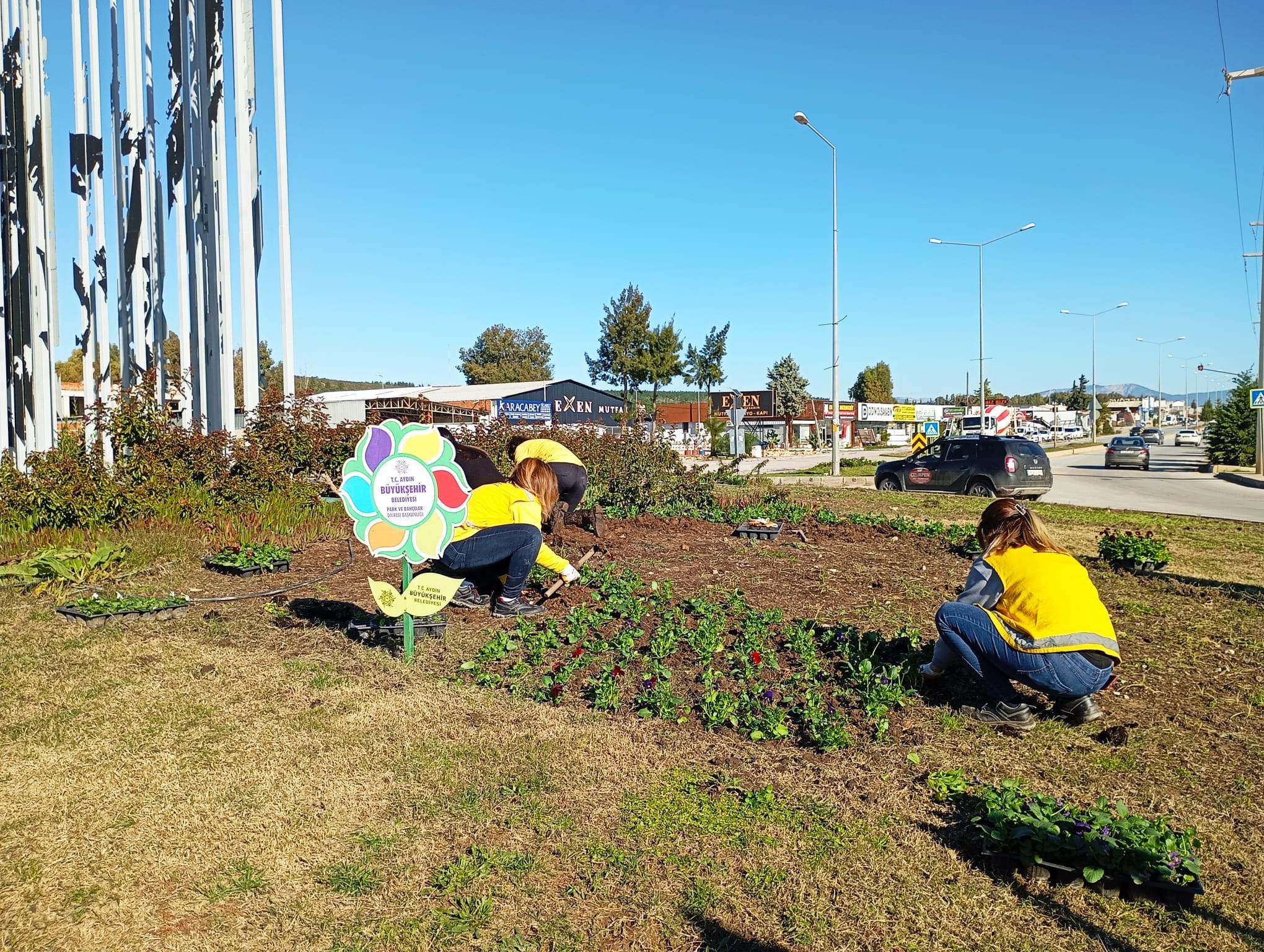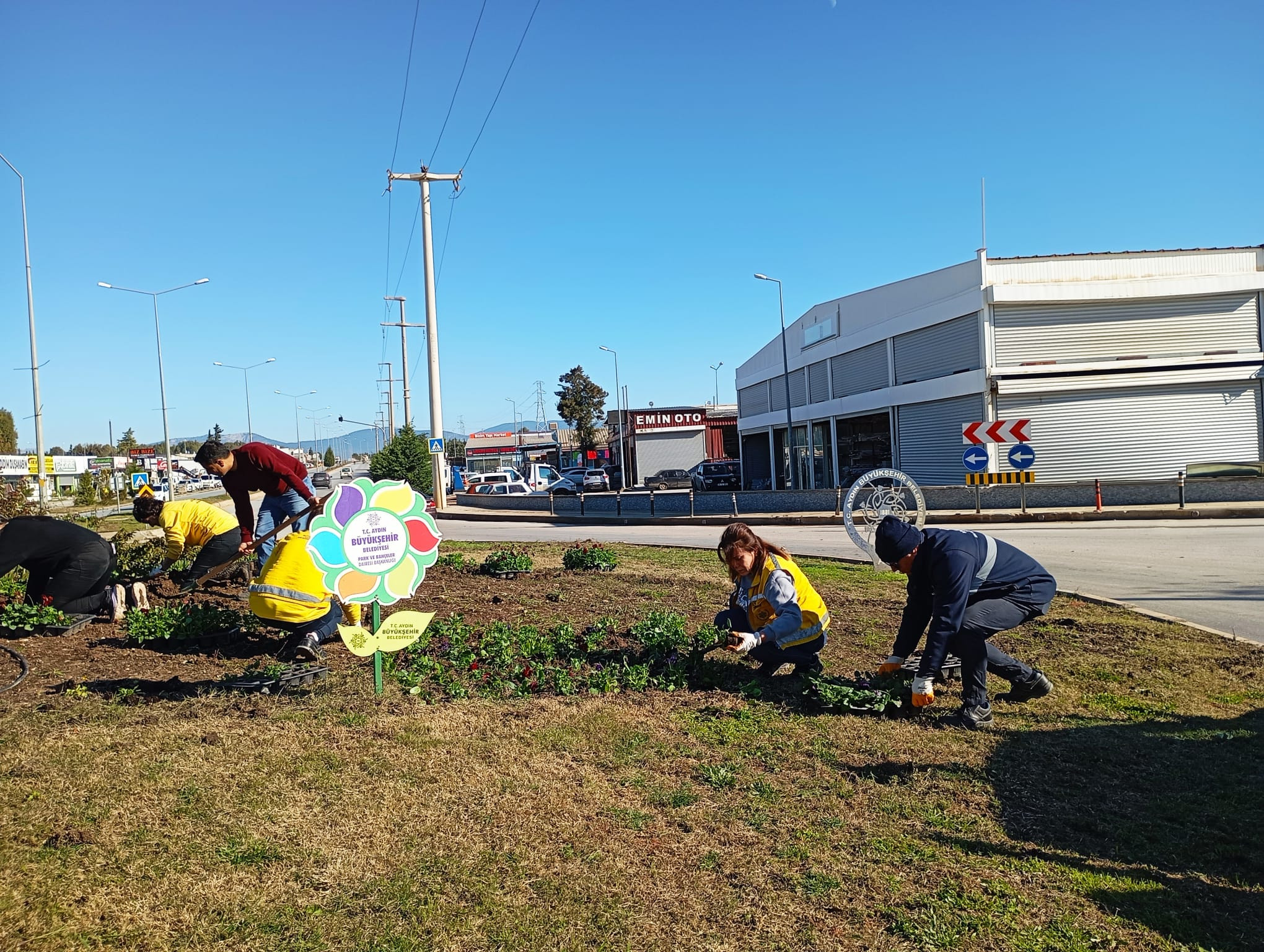 Aydın’ın tüm ilçelerinde, ana arterlerin yanı sıra Büyükşehir Belediyesi'nin sorumluluk alanındaki tüm kavşak ve yollarda bakım ve çiçeklendirme çalışmaları hız kesmeden devam ediyor. K