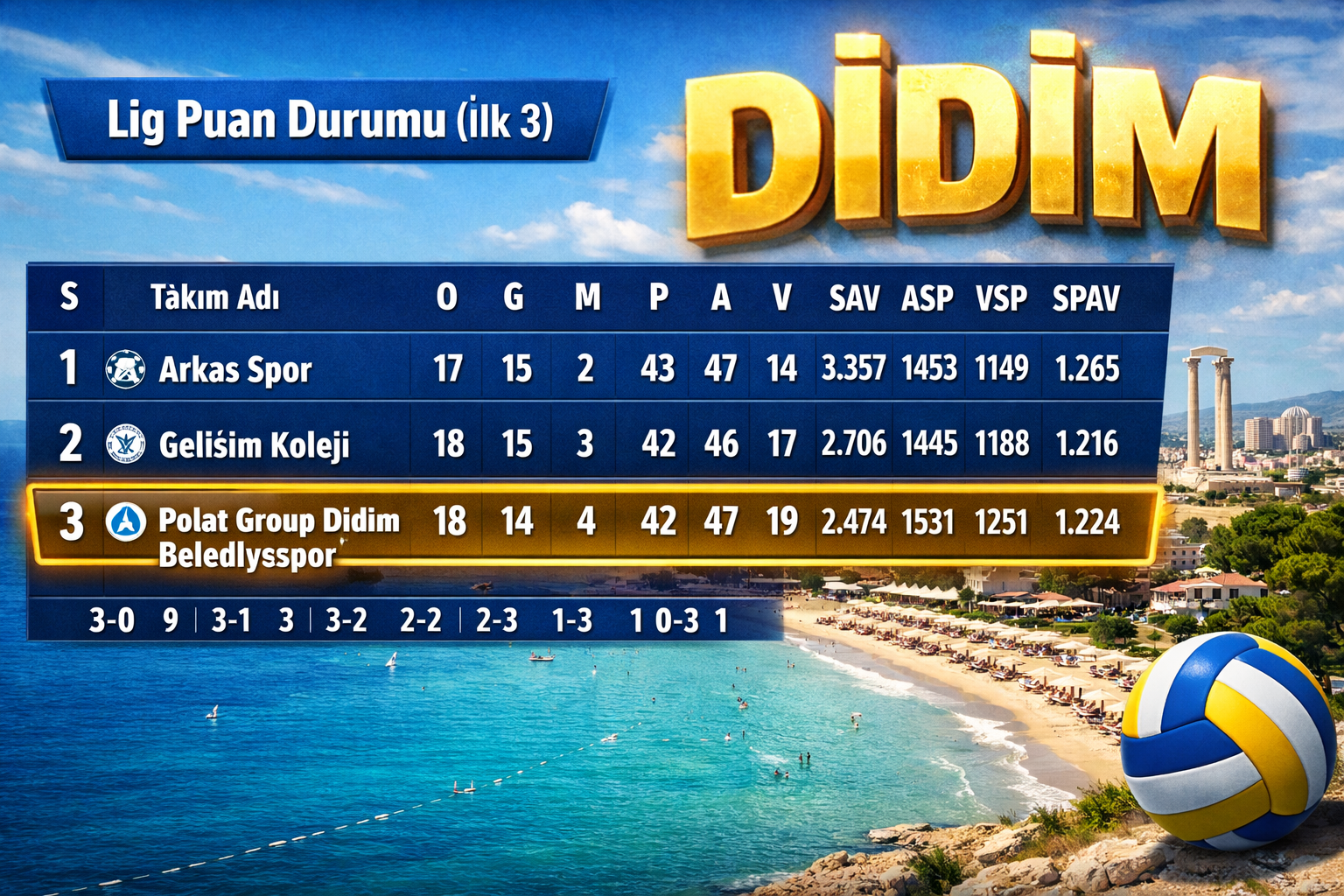 Bu galibiyetle Didim temsilcisi, 19. hafta itibarıyla zirve yarışında avantajını koruyan ve rakiplerine net mesaj veren bir konuma yerleşti. Özellikle sezon boyunca sürdürülen istikrarlı performansın, bu haftalarda skora doğrudan yansıması tesadüf değil. Takım, fikstürün en kritik bölümünde form grafiğini yukarı taşımasını bildi.