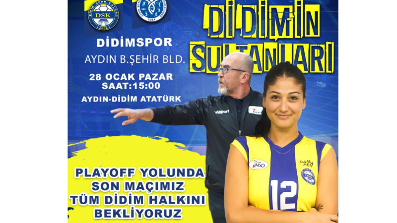 Didim Kadın Voleybol Takımı (Didim’in Sultanları) Aydın Büyükşehir Belediyesi Kadın Voleybol Takımı ile, Playoff son maçında 28 Ocak Pazar Günü Saat 15.00'da Didim Atatürk Spor Salonu'nda karşı karşıya geliyor.
