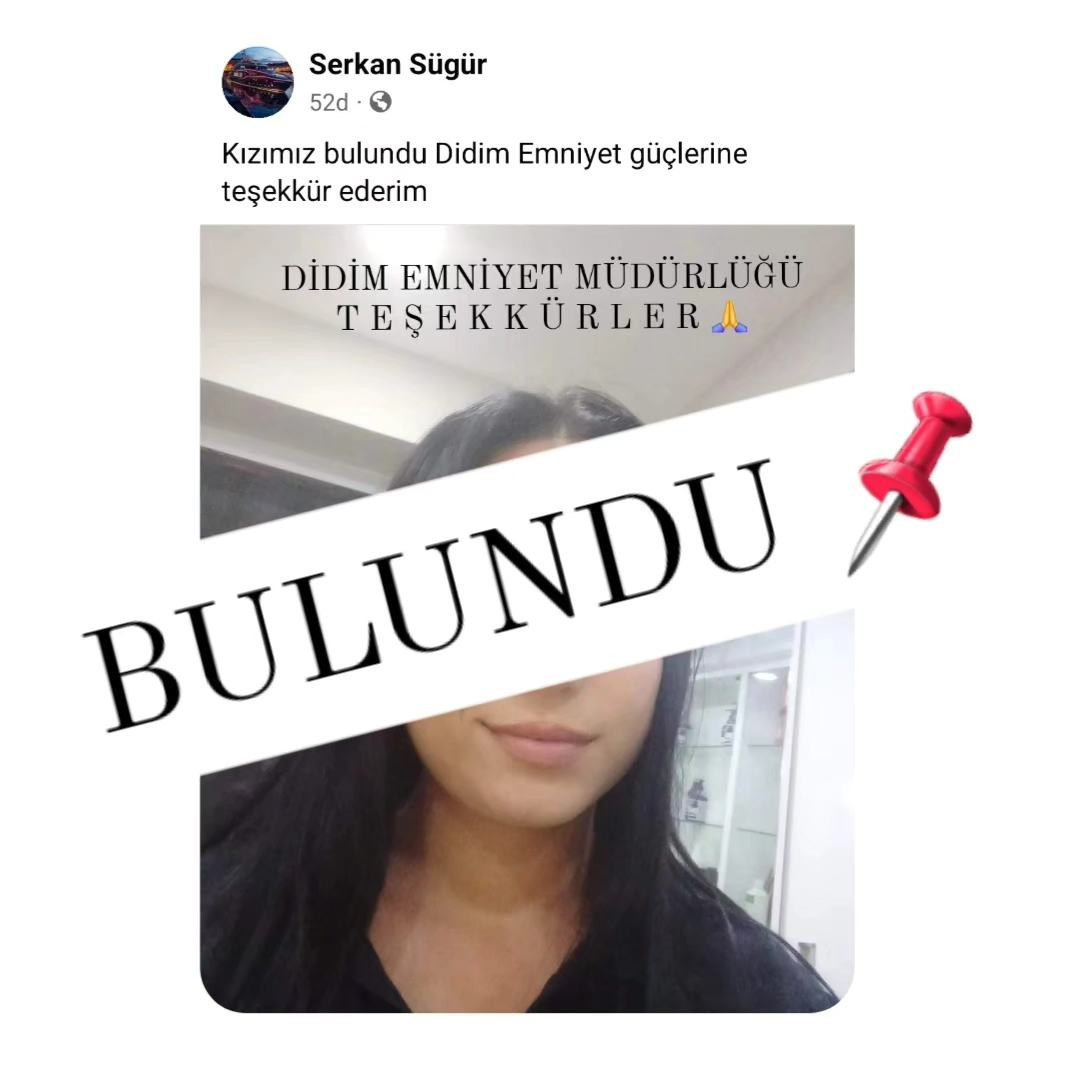Bunun üzerine aile, harekete geçen Didim İlçe Emniyet Müdürlüğü ekipleri 17 yaşındaki Gizem Nur Sügür'ü buldu.