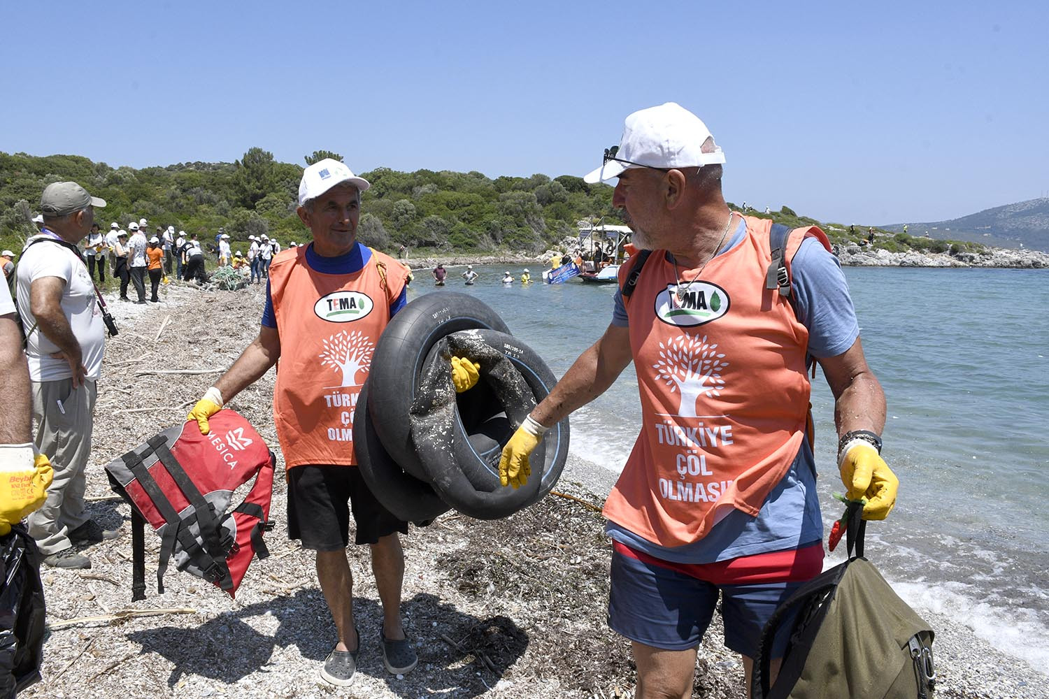 Dilek Yarımadası Milli Parkı’nda kara ulaşımın olmadığı koy ve sahillerde yapılan temizlik sırasında özellikle Samos Adası’ndan ve deniz araçlarından atılan atıklar dikkat çekerken yatlar, gezi tekneleri, troller ve büyük balıkçı teknelerinden denize atılan, kıyı yerleşimlerinden duyarsız kişilerin bıraktığı ve Yunanistan’ın Samos Adası’ndan rüzgarla gelerek kıyıda biriken tüm çöpler toplandı.