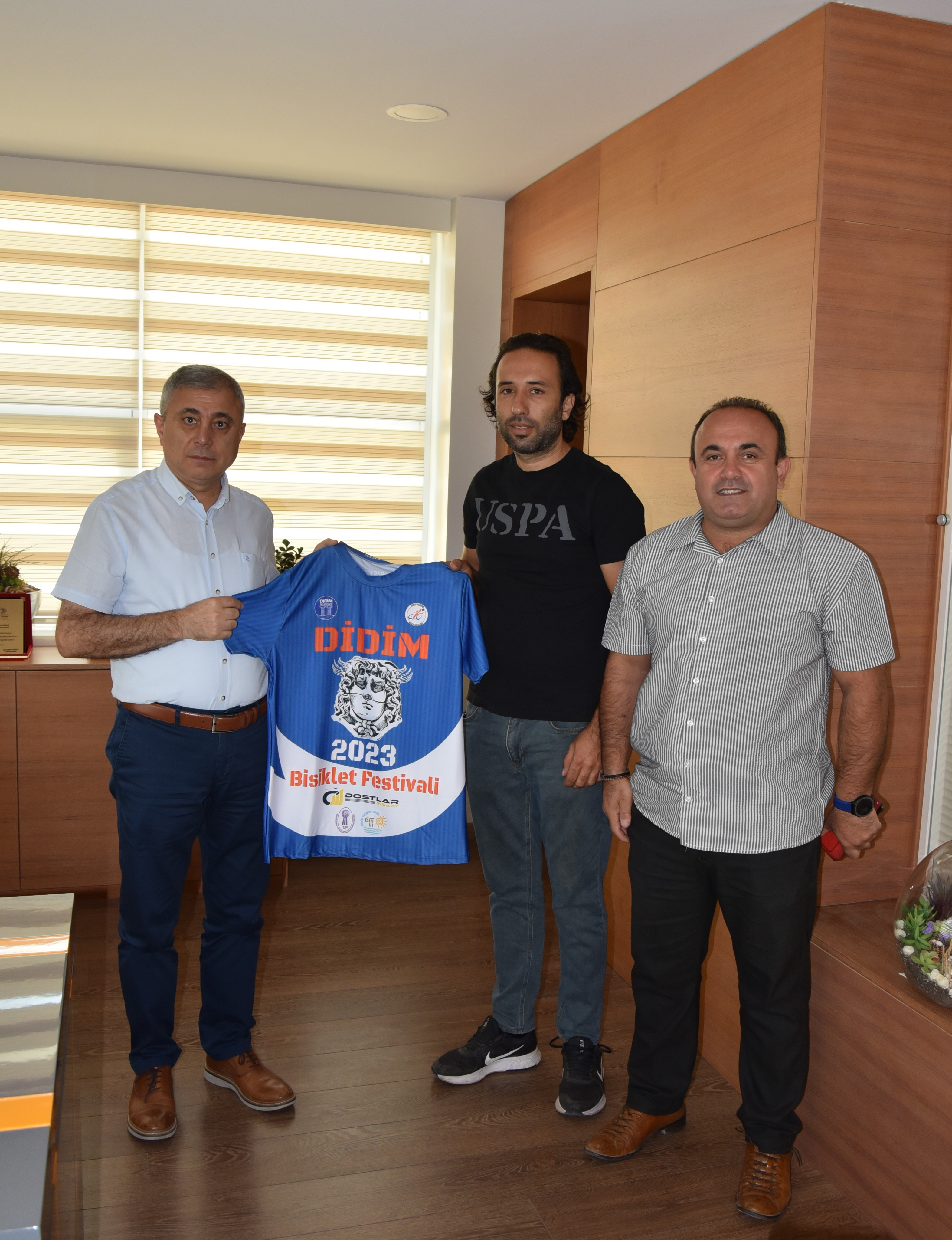 Festivali destekleyen kurumları ziyaret ettiklerini söyleyen Sümer, Festival anı tişörtünü Yönetim Kurulu Başkanı Hilmi Erbaş’a hediye etti.