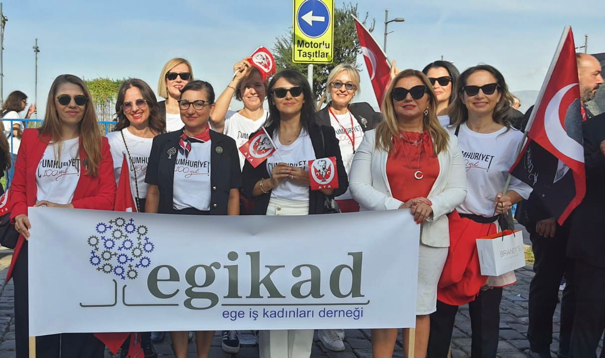 Ege İş Kadınları Derneği (EGİKAD), 29 Ekim Cumhuriyet Bayramı ve Cumhuriyet’in 100. Yılı’nı İzmir Valiliği tarafından organize edilen kortejde kutladı.