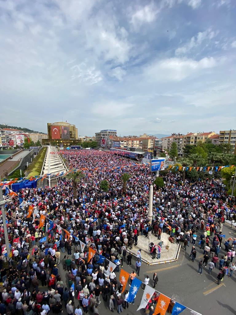 Bu Aydın isterse, bu defa sandıkları bir başka patlatır. Sokaklara, caddelerde taşan sevdanız için her birinize teşekkür ediyorum. Rabb'im, muhabbetimizi daim eylesin diyorum. Buradan Aydın'ın komşuları olan Muğla'ya, Manisa'ya da en kalbi selamlarımı gönderiyorum. Elbette gönlümüz tüm Türkiye'yi ziyaret etmeyi, her ilimize selam vermeyi istiyor. Ancak bu sene ramazan ayını özellikle depremzedelerimize ve deprem bölgesindeki illerimize ayırdık. Gidemediğimiz illerimize 14 Mayıs'tan sonra inşallah teşekkür ziyareti yapacağız. Tabii bunun için önce 14 Mayıs'tan zaferle çıkmamız gerekiyor. Hazır mıyız, sandıkları patlatıyor muyuz? Birilerini de sandığa gömüyor muyuz? Sizin bu heyecanınız, bu aşkınız var ya bu işin bittiğini haber veriyor.