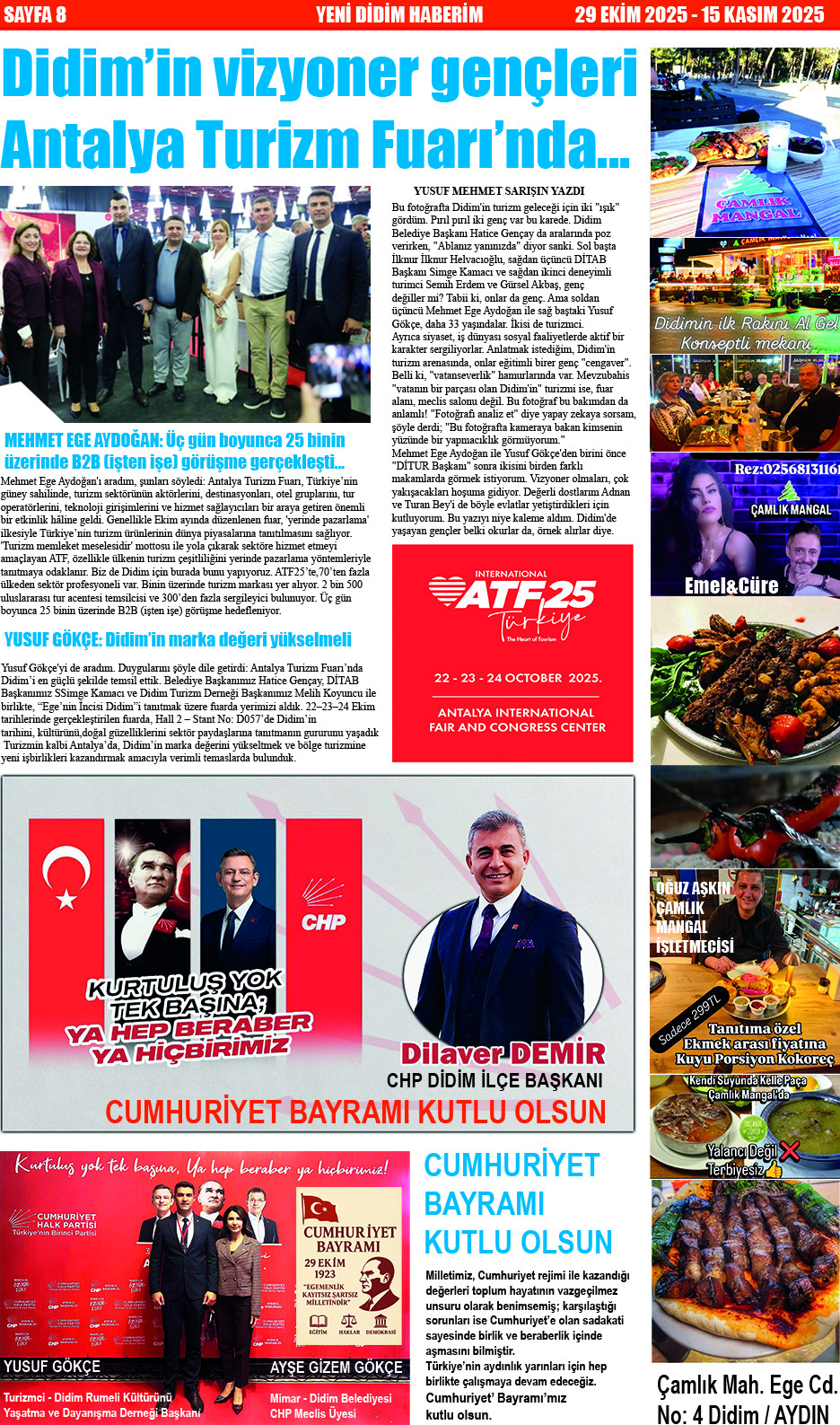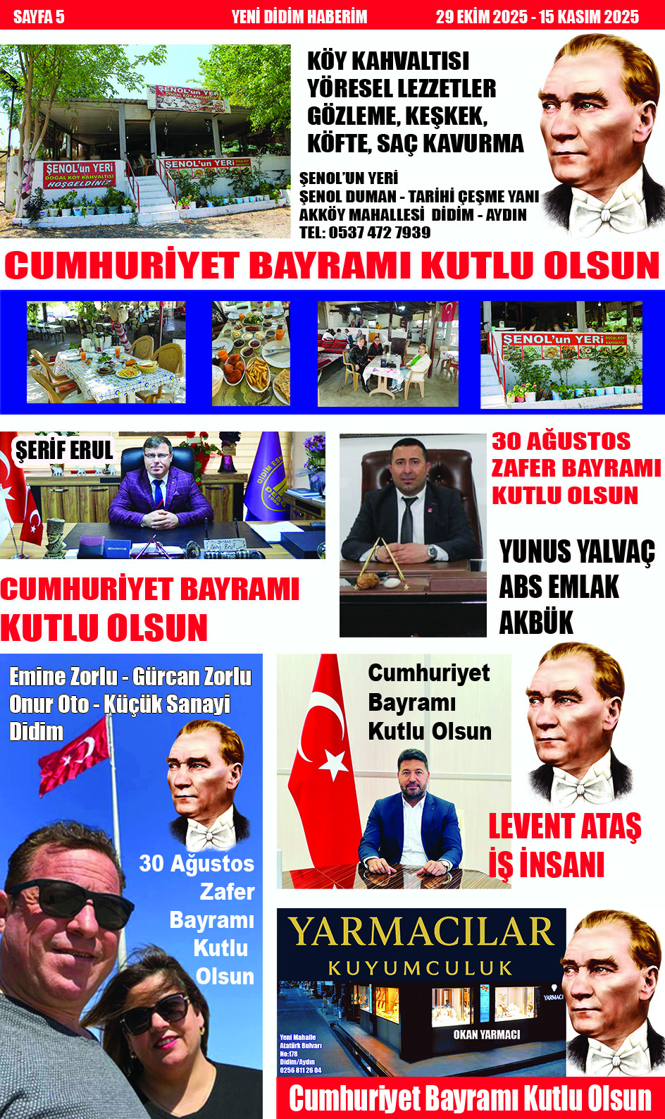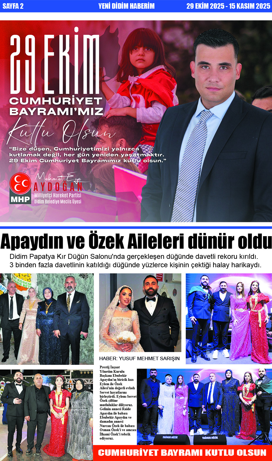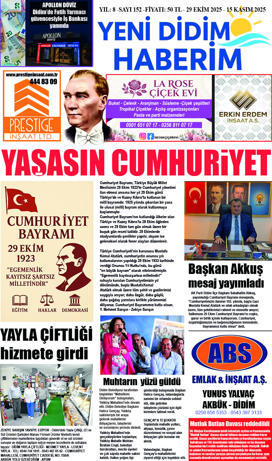 Yeni Didim Haberim Cumhuriyet Bayramı Gazetesi Çıktı. Reklam verenlere teşekkür edriz.