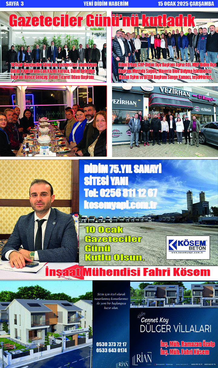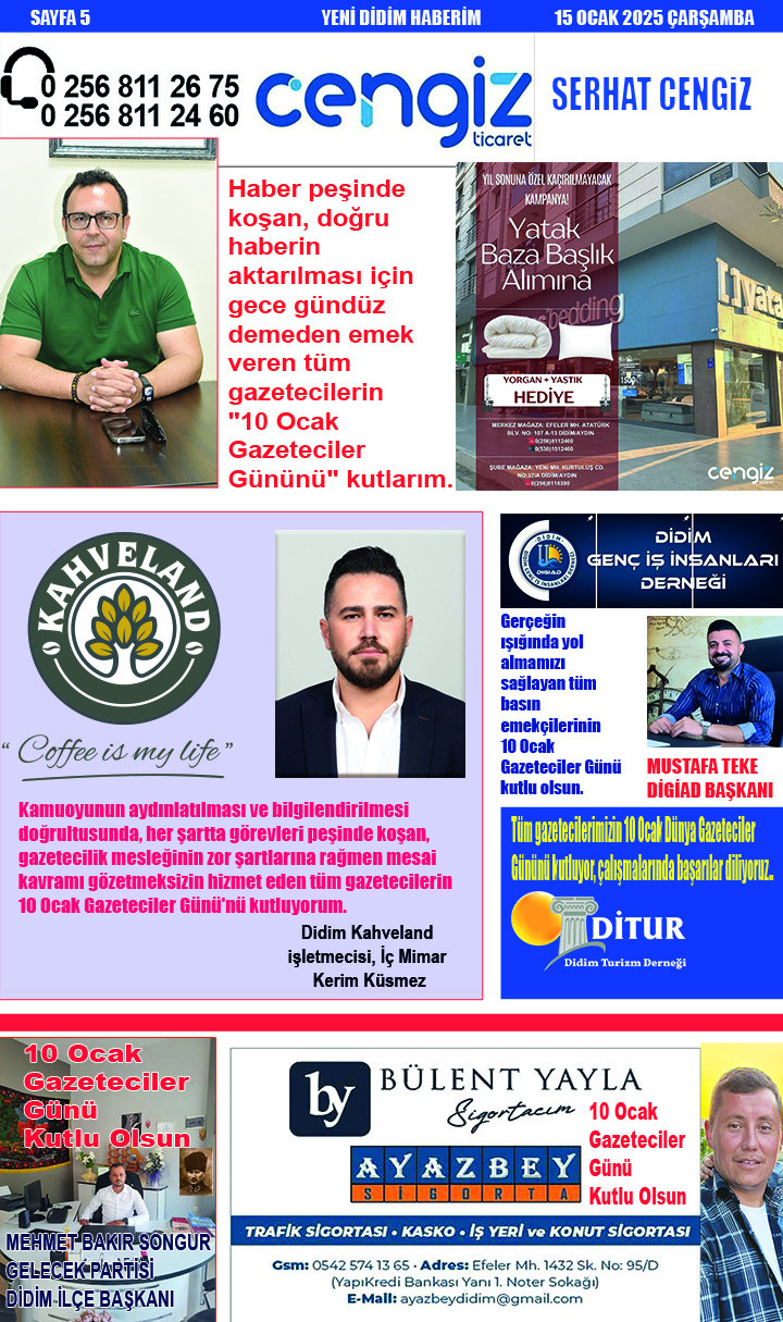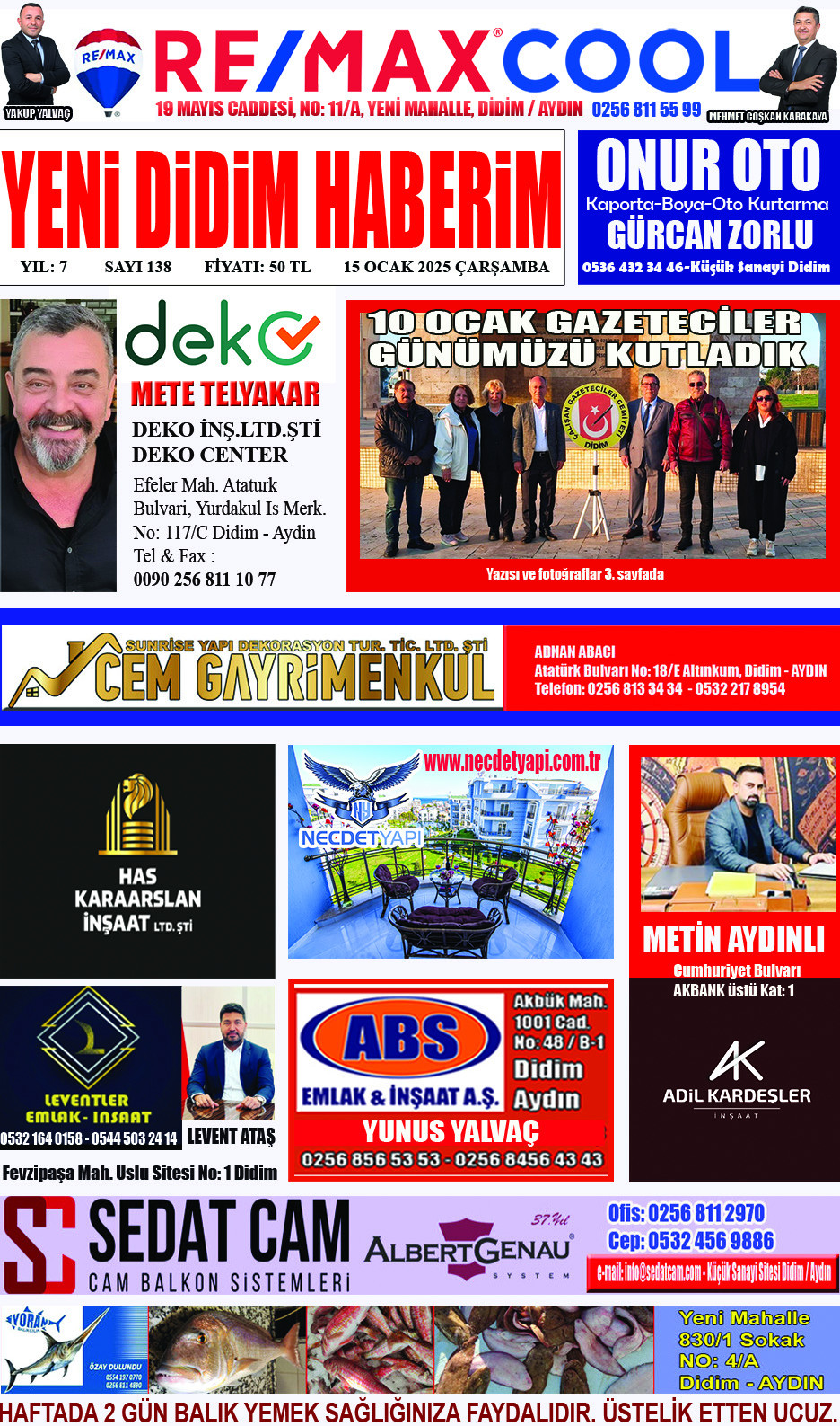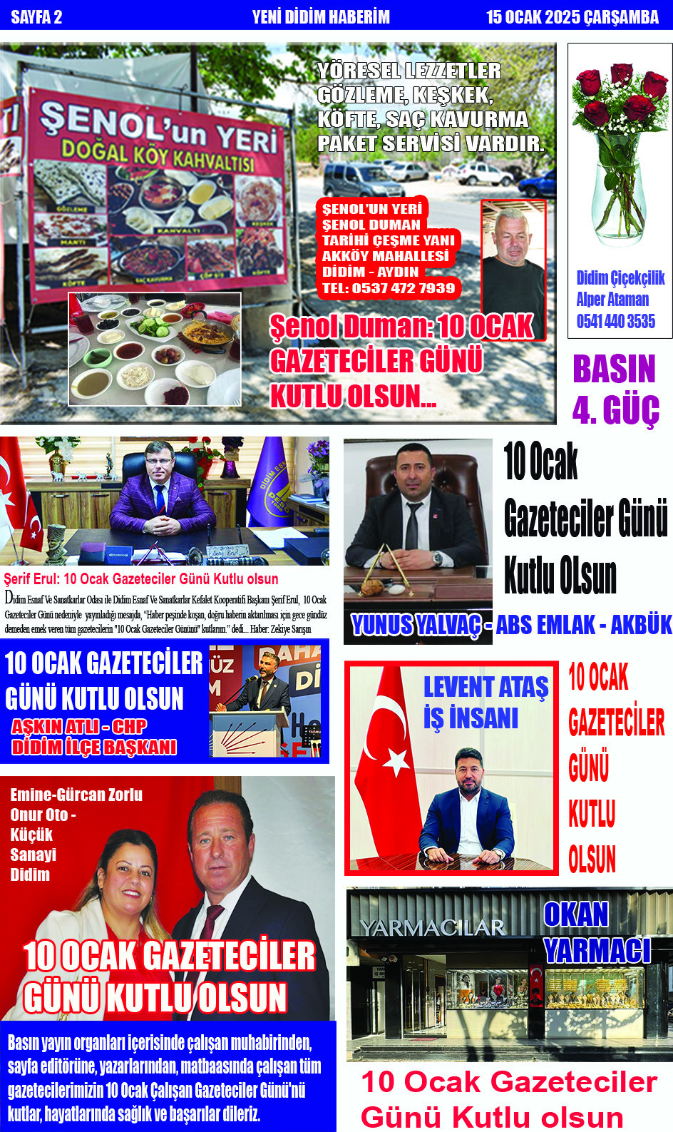 Yeni Didim Haberim Gazetesi 10 Ocak Gazeteciler Günü Özel Sayısı çıktı. Reklam verenlere teşekkür ederiz.