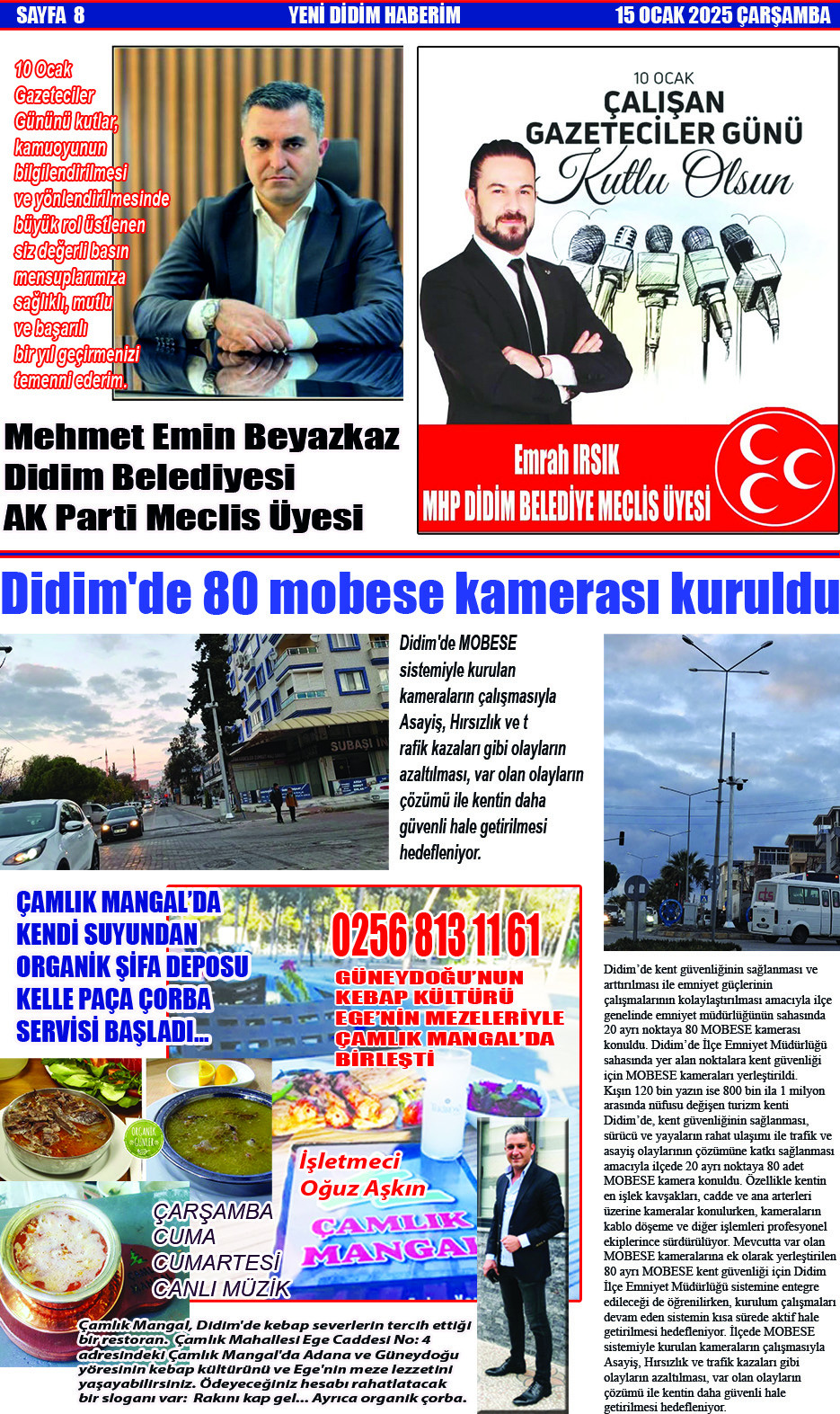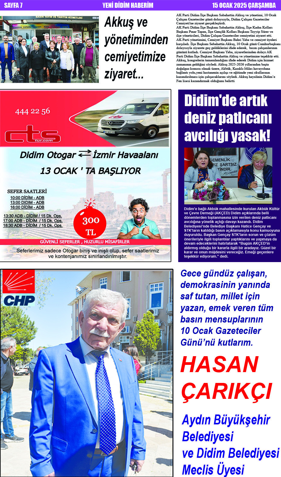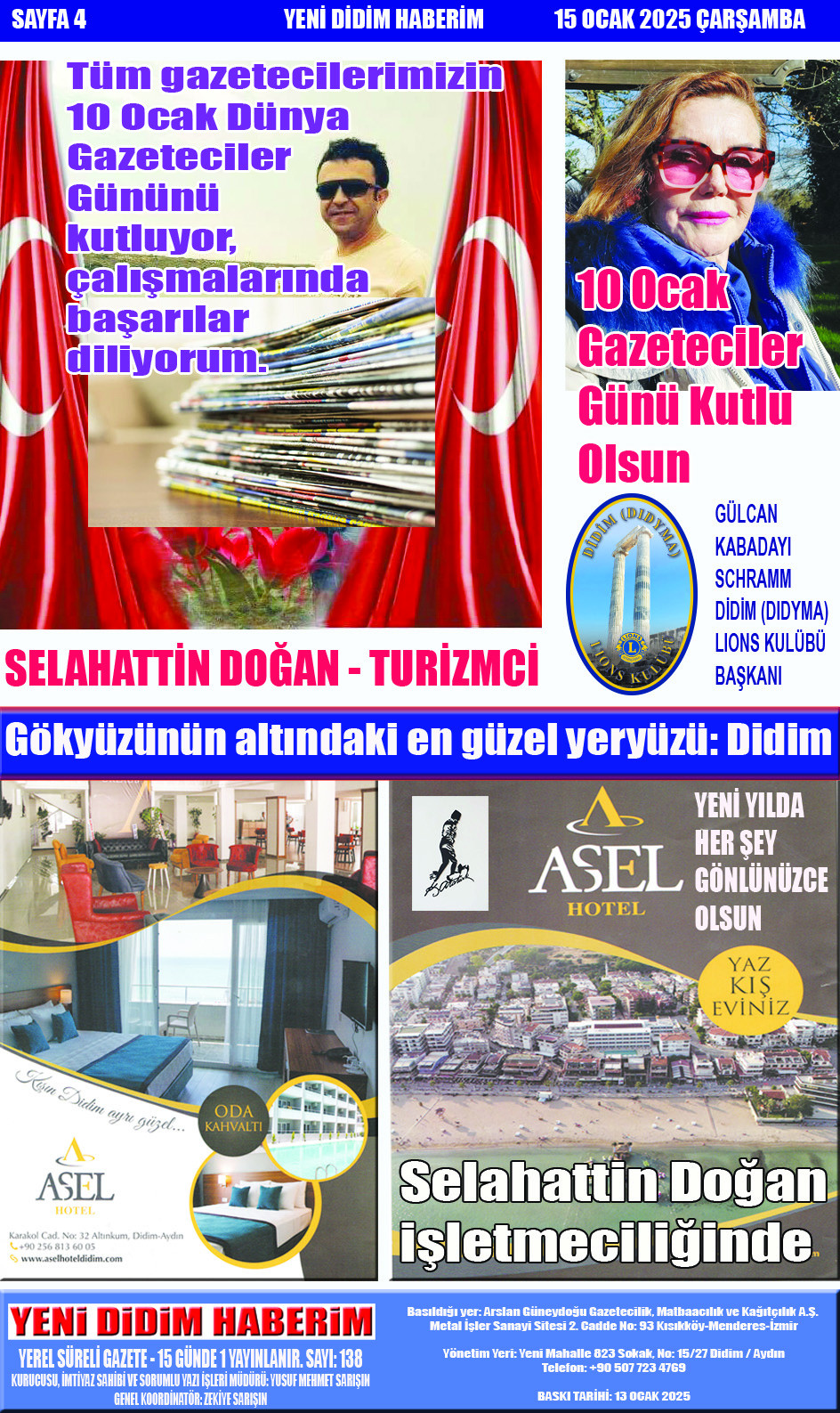 Yeni Didim Haberim Gazetesi 10 Ocak Gazeteciler Günü Özel Sayısı çıktı. Reklam verenlere teşekkür ederiz.